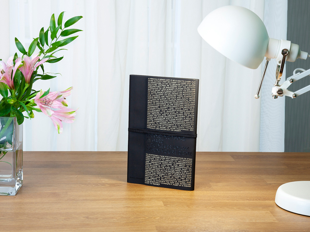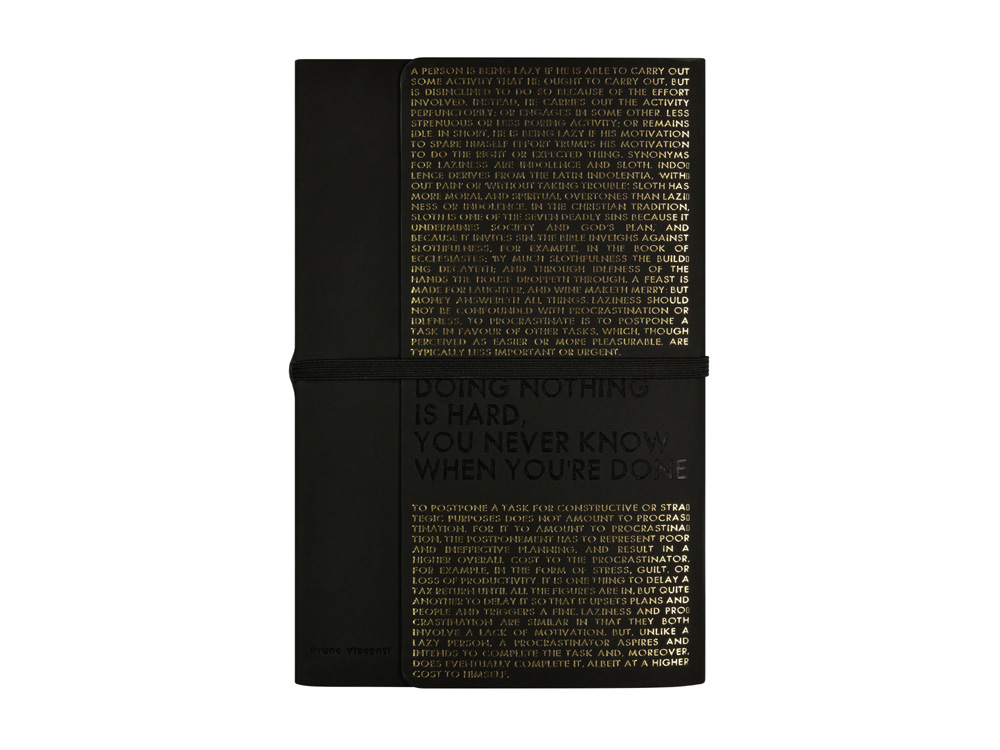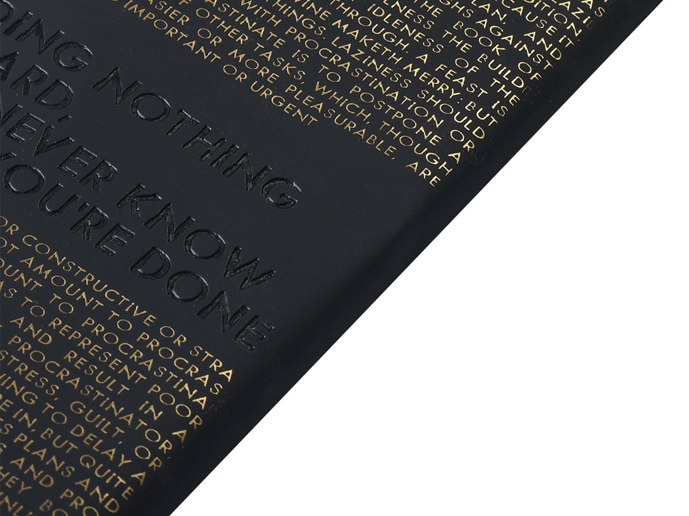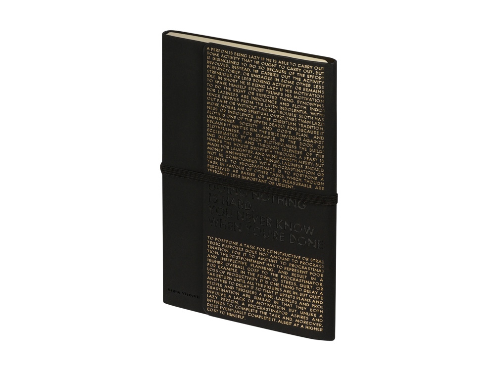 Так трудно ничего не делать, ведь совершенно непонятно, когда ты закончишь! Лаконичный слоган мотивирует к активным действиям. Планируй и завершай! Вот что кроется в элегантной надписи, выполненной золотым тиснением! А Flex обложка напоминает Будь гибким! Великолепный недатированный ежедневник Bilbao черно-синего цвета с тиснением фольгой. Бежевая бумага 65 г/м, широкая горизонтальная фиксирующая резинка. Гибкая обложка с покрытием Soft-touch. Особенность этого ежедневника - часть обложки внахлест может использоваться как закладка. Ежедневник упакован в картонный полукороб и термопленку.