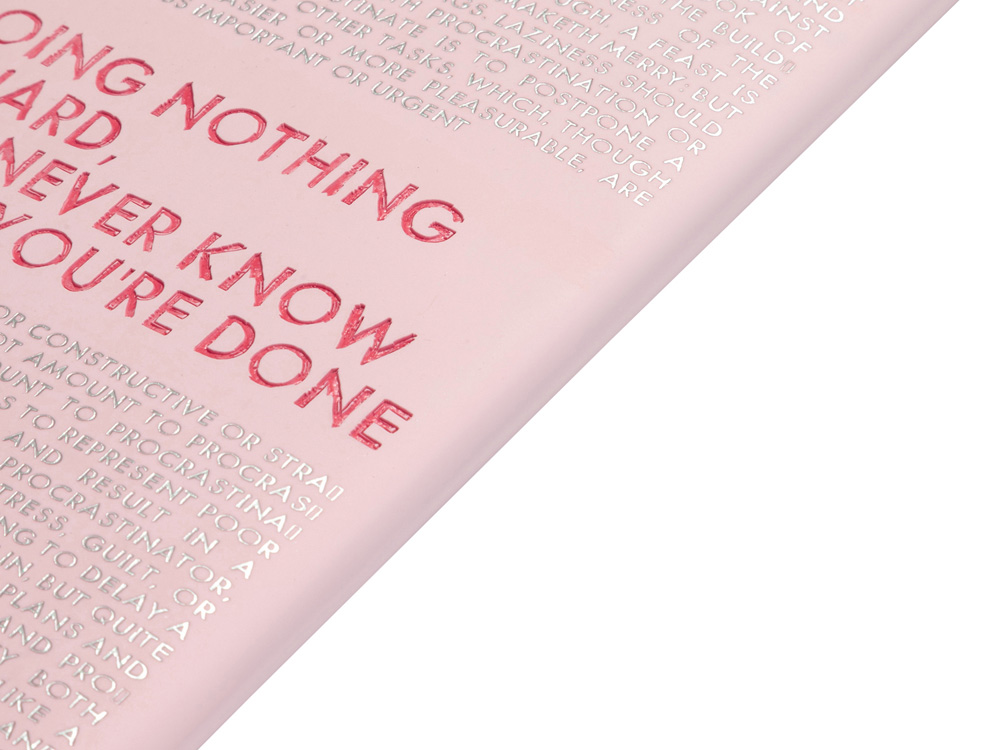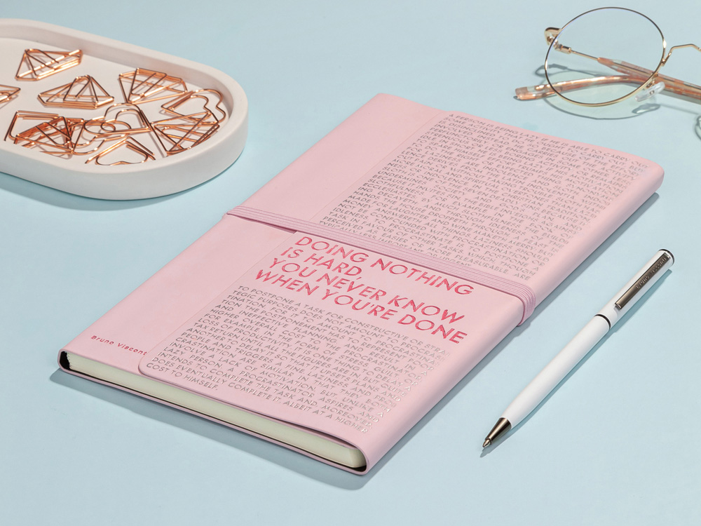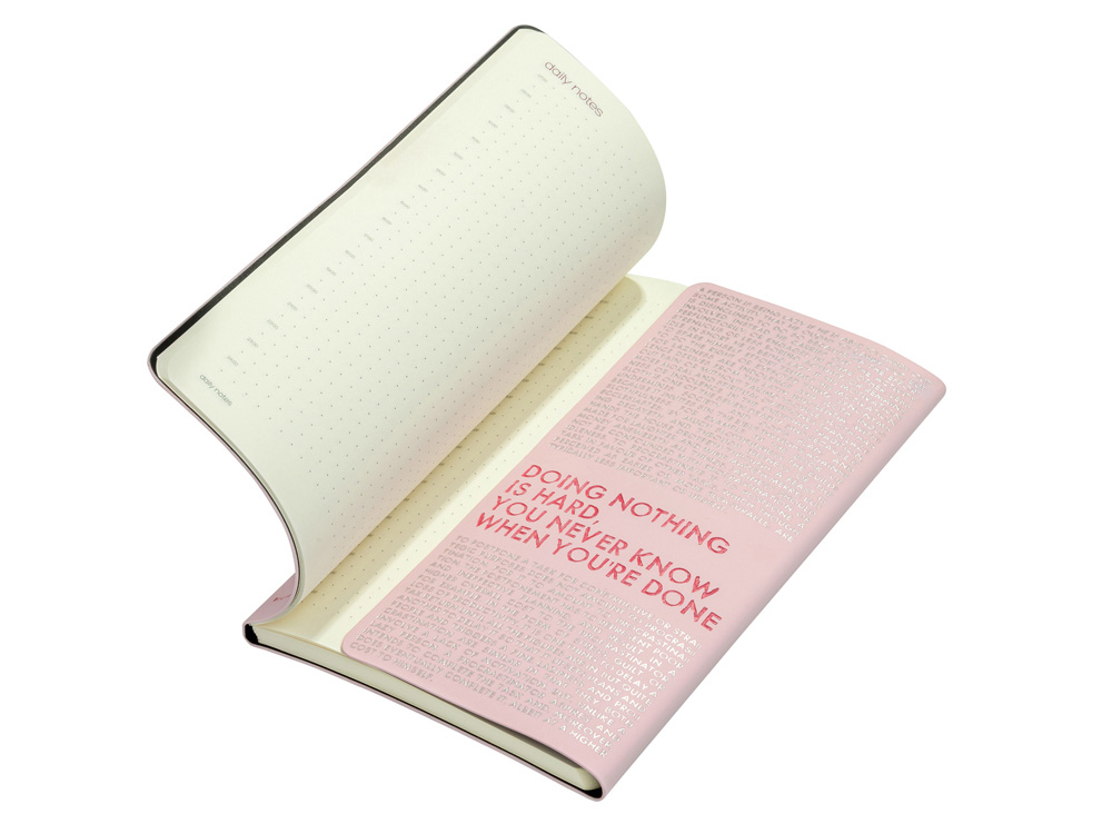 Так трудно ничего не делать, ведь совершенно непонятно, когда ты закончишь! Лаконичный слоган мотивирует к активным действиям. Планируй и завершай! Вот что кроется в элегантной надписи, выполненной золотым тиснением! А Flex обложка напоминает Будь гибким! Великолепный недатированный ежедневник Bilbao черно-синего цвета с тиснением фольгой. Бежевая бумага 65 г/м, широкая горизонтальная фиксирующая резинка. Гибкая обложка с покрытием Soft-touch. Особенность этого ежедневника - часть обложки внахлест может использоваться как закладка. Ежедневник упакован в картонный полукороб и термопленку.