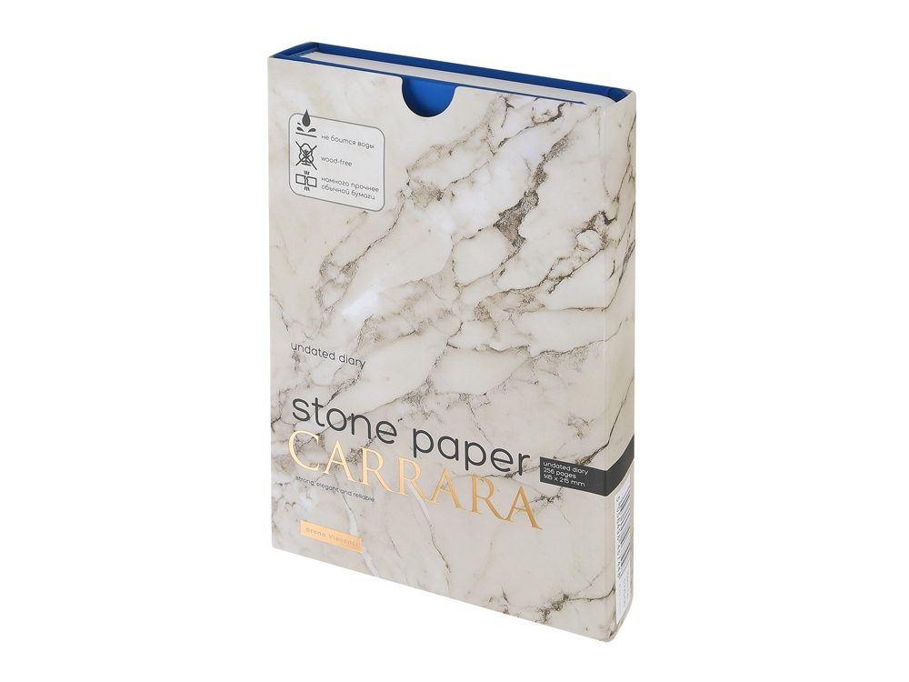 Уникальность недатированного ежедневника Carrara от Bruno Visconti — в его блоке. Он изготовлен из каменной бумаги плотностью 144 г/кв.м, отличающейся особой гладкостью и повышенной прочностью. Она не боится воды и пролитого кофе, достаточно просто протереть сухой салфеткой. Раздел для записей и планирования рабочих и личных дел дополнен справочной информацией на 15 страницах. Блок надежно защищен от замятия твердой обложкой из искусственной кожи с Soft Touch покрытием. Ляссе в цвет обложки шириной 7 мм поможет легко и быстро найти нужную страницу.