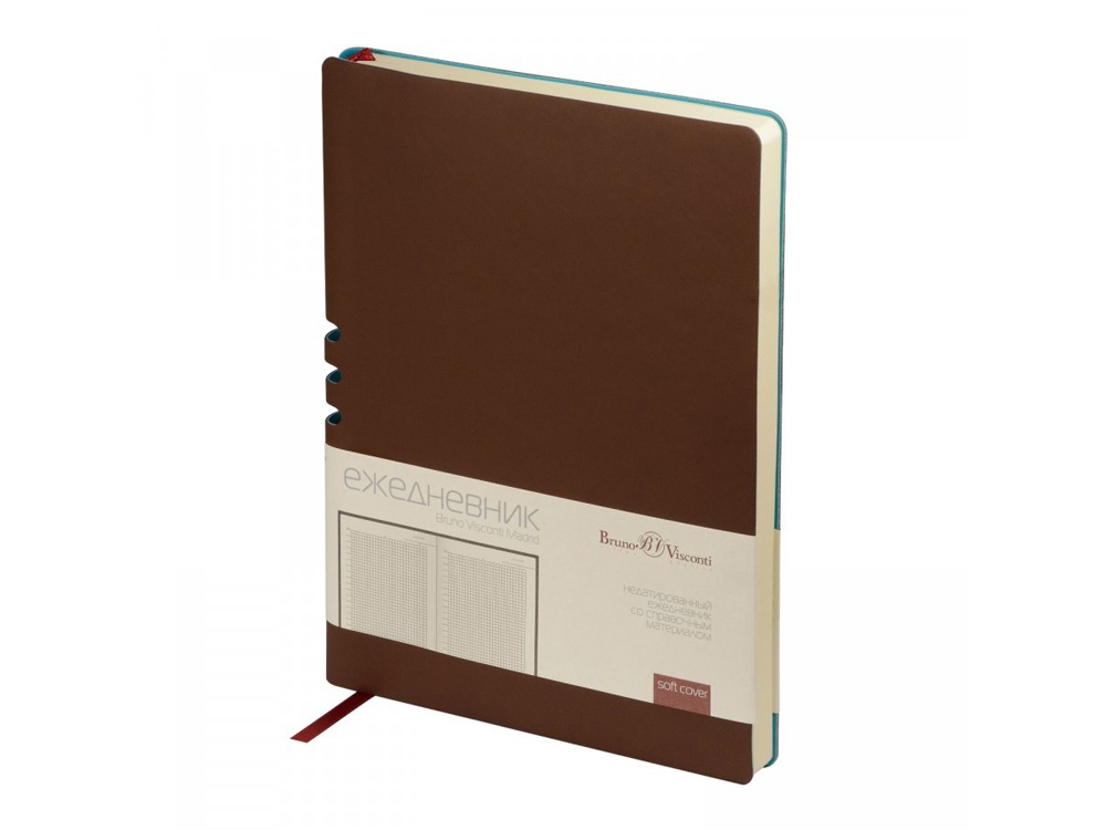 Этот ежедневник вдохновлен солнечными днями и томными ночами Мадрида. И как этот великий город он лишь намекает снаружи на свои тайны. Так, вырубка на спинке – это удобная петля для ручки. Пользоваться этим секретом – одно удовольствие. Недатированный ежедневник Madrid от Bruno Visconti исполнен в благородном коричневом цвете. Гибкая обложка с покрытием Soft-Touch. Бордовое ляссе выгодно прекрасно сочетается со скругленной обложкой и бежевым блоком. Для изготовления данного ежедневника использована бумага плотность 70 г/м. Справочная информация на 17 страницах. Ежедневник упакован в картонный полукороб и термопленку.