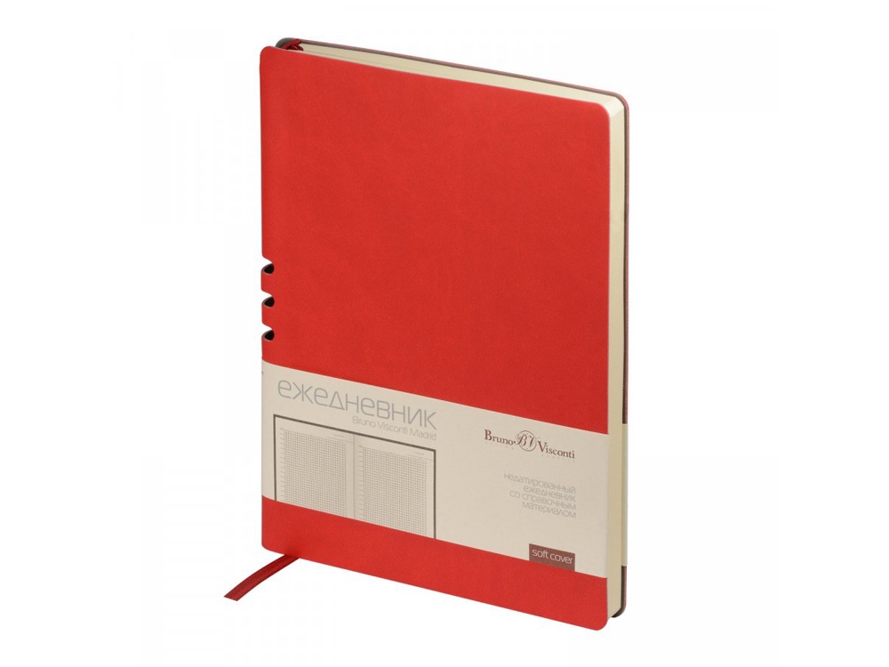 Этот ежедневник вдохновлен солнечными днями и томными ночами Мадрида. И как этот великий город он лишь намекает снаружи на свои тайны. Так, вырубка на спинке – это удобная петля для ручки. Пользоваться этим секретом – одно удовольствие. Недатированный ежедневник Madrid от Bruno Visconti исполнен в благородном красном цвете. Гибкая обложка с покрытием Soft-Touch. Бордовое ляссе выгодно прекрасно сочетается со скругленной обложкой и бежевым блоком. Для изготовления данного ежедневника использована бумага плотность 70 г/м. Справочная информация на 17 страницах. Ежедневник упакован в картонный полукороб и термопленку.