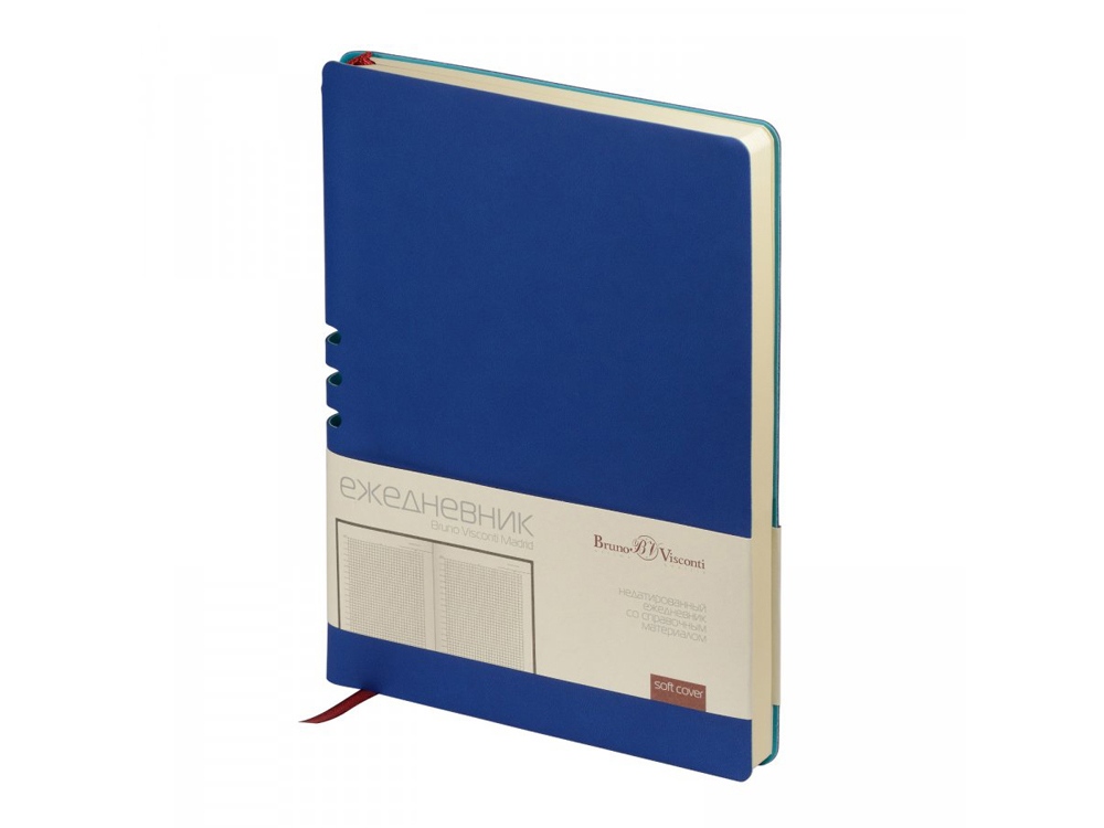 Этот ежедневник вдохновлен солнечными днями и томными ночами Мадрида. И как этот великий город он лишь намекает снаружи на свои тайны. Так, вырубка на спинке – это удобная петля для ручки. Пользоваться этим секретом – одно удовольствие. Недатированный ежедневник Madrid от Bruno Visconti исполнен в благородном синем цвете. Гибкая обложка с покрытием Soft-Touch. Бордовое ляссе выгодно прекрасно сочетается со скругленной обложкой и бежевым блоком. Для изготовления данного ежедневника использована бумага плотность 70 г/м. Справочная информация на 17 страницах. Ежедневник упакован в картонный полукороб и термопленку.
