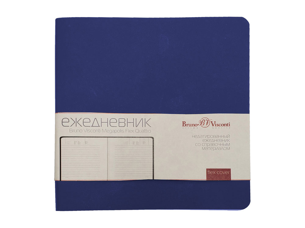 Оригинальный формат ежедневника Megapolis Flex Quattro никого не оставляет равнодушным. Большинство покупателей влюбляются в него с первого взгляда. Обложка выполнена из качественного, тактильно приятного искусственного материала, гибкая и не ломкая. Великолепная бежевая бумага плотностью 70 г/м и практичная линовка с расписанным временем для планирования дел. Этот ежедневник отлично поместится даже в маленькую сумку, а у всех, кто его увидит вызовет неподдельный восторг. Справочная информация на 19 страницах и телефонная книга на 28. Удобно, практично и, конечно же, стильно!