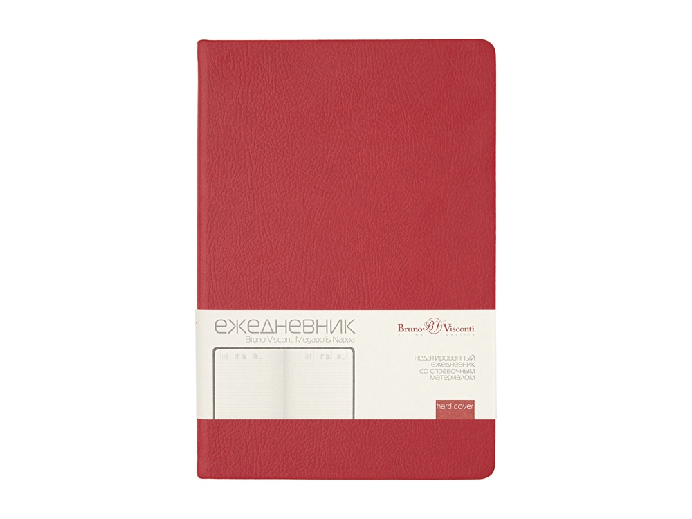 Ежедневник формата А5 Megapolis Nappa ТМ Bruno Visconti — для тех, кто предпочитает утилитарные ежедневники с яркими элементами. Двойное ляссе, окрашенный обрез и фактурная искусственная кожа твердой обложки придают этому ежедневнику привлекательности и благородства одновременно. Блок произведен из бежевой бумаги плотностью 70 г/кв.м и помимо раздела для планирования содержит справочную информацию