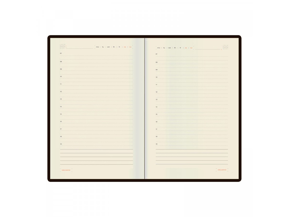 Недатированные ежедневник OXFORD ТМ Bruno Visconti из экокожи с эффектом Soft Touch - удобный и стильный инструмент для деловых людей. Удобство и практичность ему гарантируют: - формат А5; - фиксирующая резинка; - сменный блок-портфолио; - ляссе; - раздел для личных данных и справочной информации на 17 страницах (часовые пояса, аэропорты Европы, телефонные и цифровые автомобильные коды, буквенные коды стран, римские цифры, единицы измерения, национальные праздники, штрихкоды, термины международной торговли, время распада алкоголя в крови, размеры одежды, греческие буквы, расход калорий при физической нагрузке, температура, скорость, формат бумаги). Благородство и стиль ежедневнику придают золотой срез, скругленные углы обложки и блока. Бумажный блок изготовлен из бумаги бежевого цвета, плотностью 70 г/кв.м и напечатан в 2 цвета. Для удобства ведения записей раздел для планирования имеет линовку с указанием времени (интервал в час) и дополнительным полем для заметок внизу каждой страницы.
