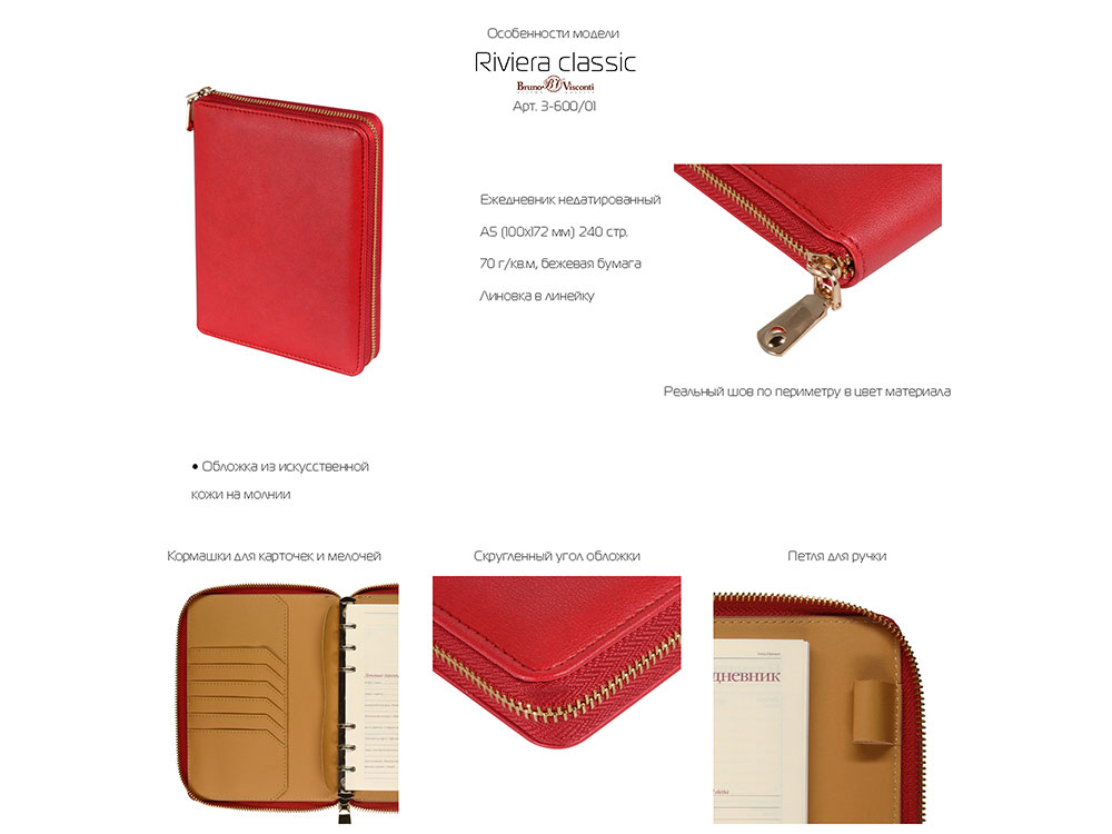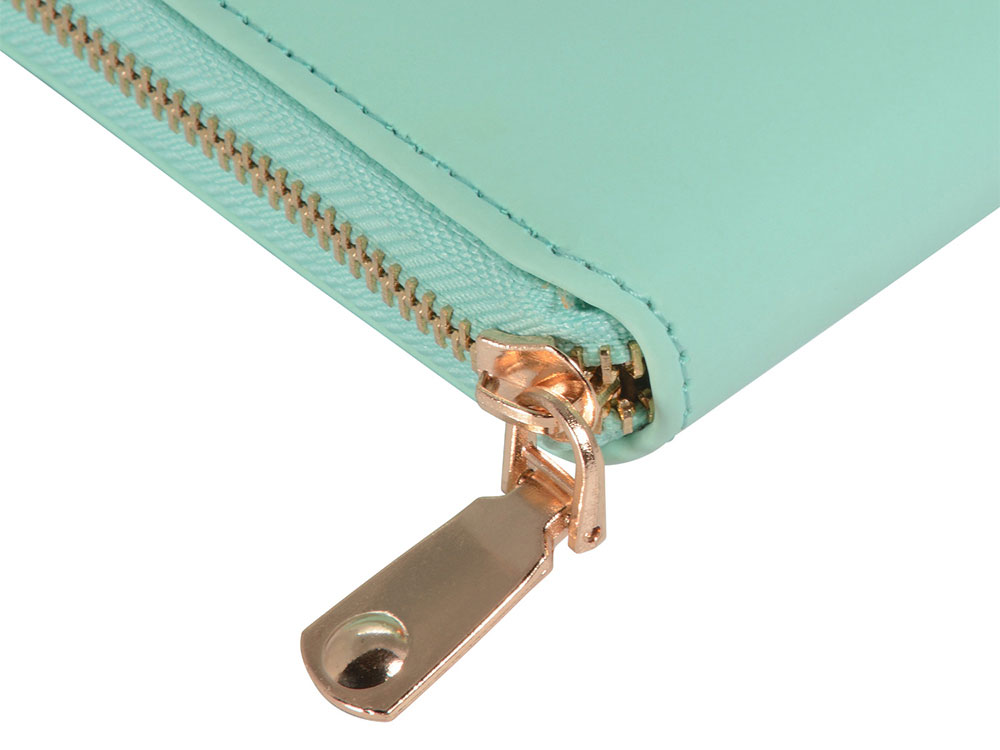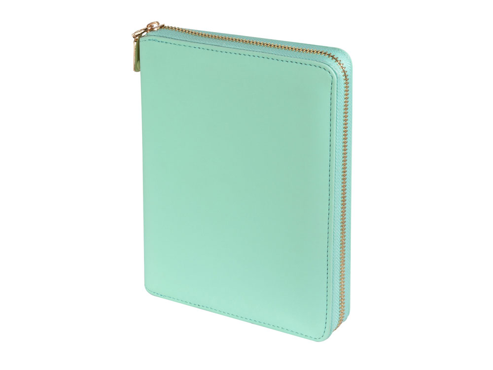 Деловая нежность! Вот как можно охарактеризовать этот очаровательный зафирно-мятный ежедневник. Большое отделение на молнии вмещает в себя и сменный блок для записей на кольцевом механизме, и отделения для визиток и ручки. В этом бизнес-аксессуаре поместятся и дополнительные документы и смартфон.