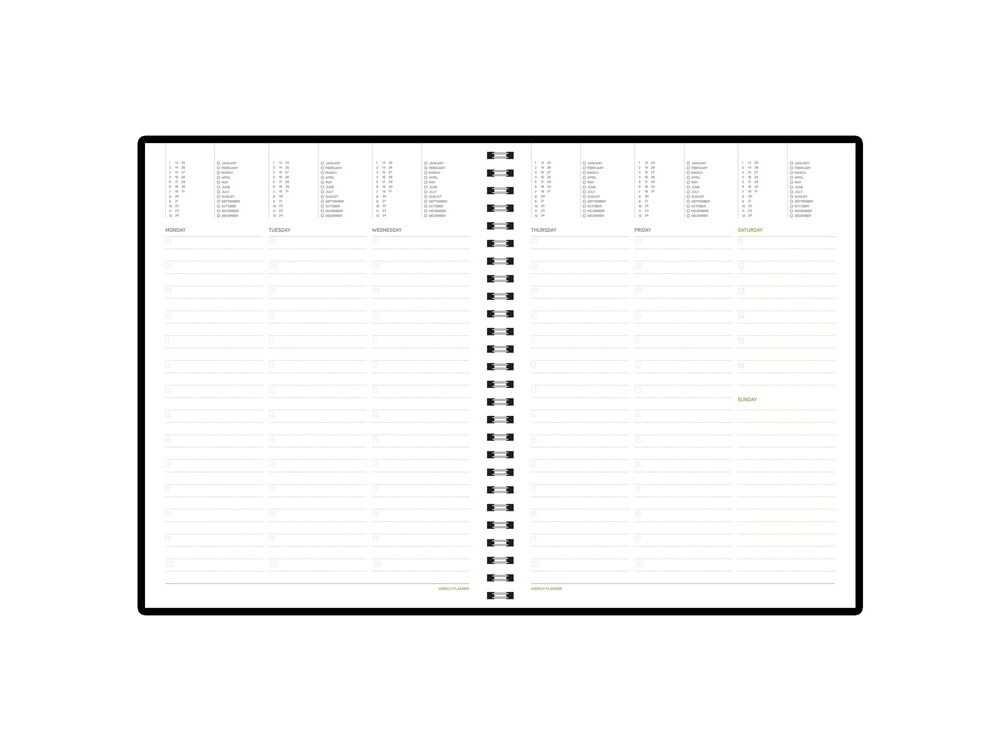 Недатированные деловой ежедневник Tintoretto. Реальный шов по периметру в цвет материала Гибкий мягкий материал обложки прекрасно подходит для нанесения тиснения. Ежедневники выпускаются в формате В5, его размеры составляют 185 х 230 мм. Блок - 136 листов соединен полускрытым металлическим гребнем. Для блока используется высококачественная бежевая бумага, обладающая плотностью 70 грамм. В начале ежедневника расположены страницы со справочным материалом.