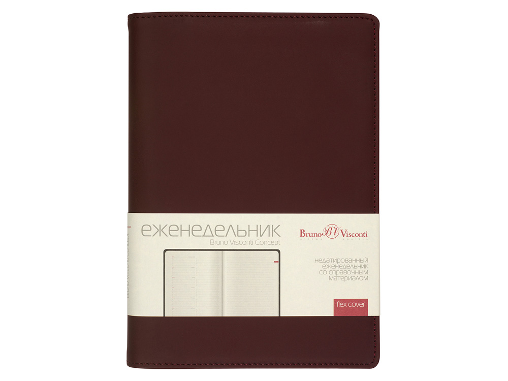 Деловые еженедельники Concept - это воплощение современного дизайна, в котором сочетаются практичные детали. Благодаря удобному формату slim-pocket еженедельник легко помещается в сумку. Еженедельник Concept в классической серой обложке формата А5. Практичный, привлекательный и приятный на ощупь материал обложки на протяжении всего срока службы сохраняет презентабельный вид. Уголки обложки имеют закругленную форму, по всему периметру сделана прострочка нитками в тон. Недатированный блок состоит из 128 страниц, укреплённых на пластиковом полускрытом гребне. На 21 странице размещена справочная информация на русском языке. День недели указан на русском и английском языках. Блок является сменным и вставляется внутрь обложки. С внутренней стороны обложка имеет вырубные отделения для визиток и кредитных карт, а также петлю для ручки на резинке. Для хранения чеков, записок и бумаг внутри расположен прозрачный пластиковый конверт.