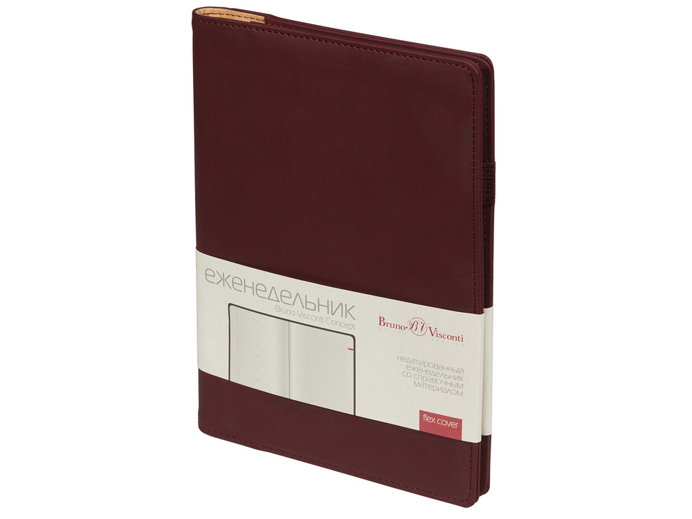Деловые еженедельники Concept - это воплощение современного дизайна, в котором сочетаются практичные детали. Благодаря удобному формату slim-pocket еженедельник легко помещается в сумку. Еженедельник Concept в классической серой обложке формата А5. Практичный, привлекательный и приятный на ощупь материал обложки на протяжении всего срока службы сохраняет презентабельный вид. Уголки обложки имеют закругленную форму, по всему периметру сделана прострочка нитками в тон. Недатированный блок состоит из 128 страниц, укреплённых на пластиковом полускрытом гребне. На 21 странице размещена справочная информация на русском языке. День недели указан на русском и английском языках. Блок является сменным и вставляется внутрь обложки. С внутренней стороны обложка имеет вырубные отделения для визиток и кредитных карт, а также петлю для ручки на резинке. Для хранения чеков, записок и бумаг внутри расположен прозрачный пластиковый конверт.