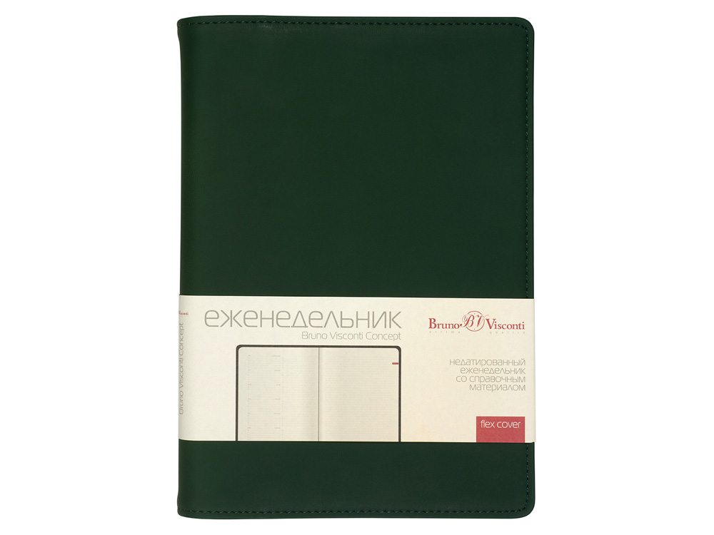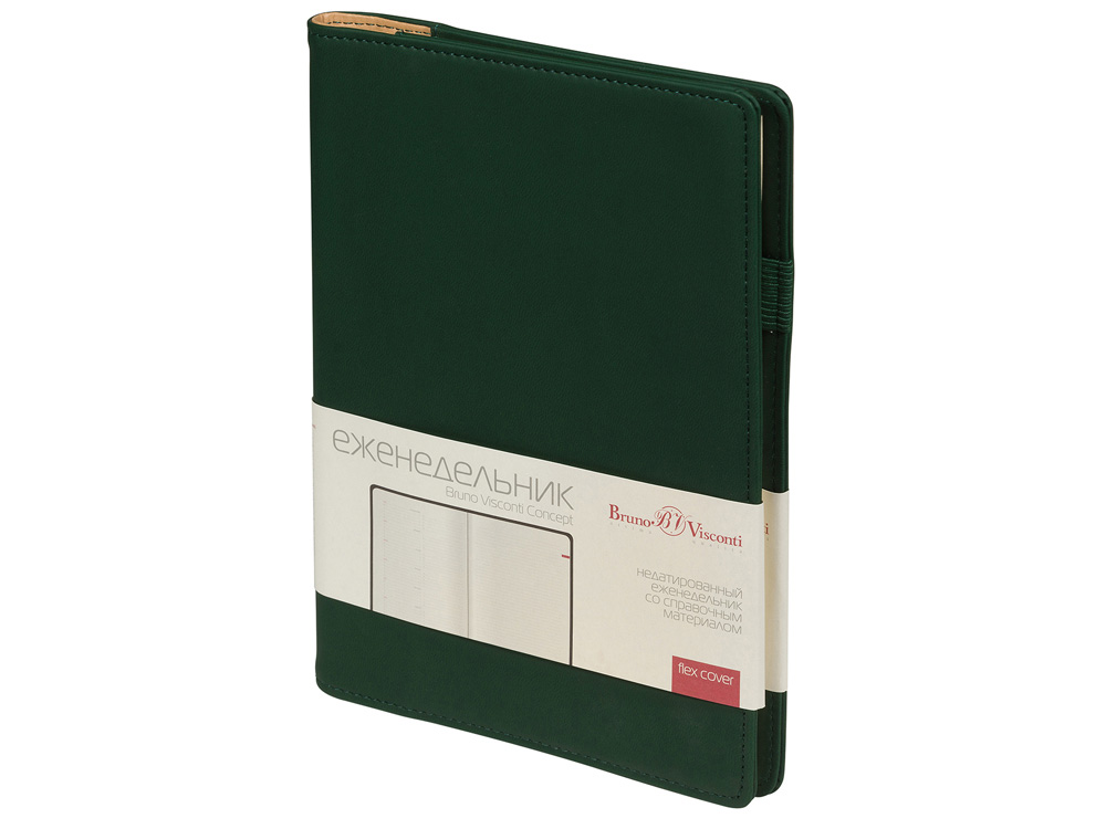 Деловые еженедельники Concept - это воплощение современного дизайна, в котором сочетаются практичные детали. Благодаря удобному формату slim-pocket еженедельник легко помещается в сумку. Еженедельник Concept в классической серой обложке формата А5. Практичный, привлекательный и приятный на ощупь материал обложки на протяжении всего срока службы сохраняет презентабельный вид. Уголки обложки имеют закругленную форму, по всему периметру сделана прострочка нитками в тон. Недатированный блок состоит из 128 страниц, укреплённых на пластиковом полускрытом гребне. На 21 странице размещена справочная информация на русском языке. День недели указан на русском и английском языках. Блок является сменным и вставляется внутрь обложки. С внутренней стороны обложка имеет вырубные отделения для визиток и кредитных карт, а также петлю для ручки на резинке. Для хранения чеков, записок и бумаг внутри расположен прозрачный пластиковый конверт.