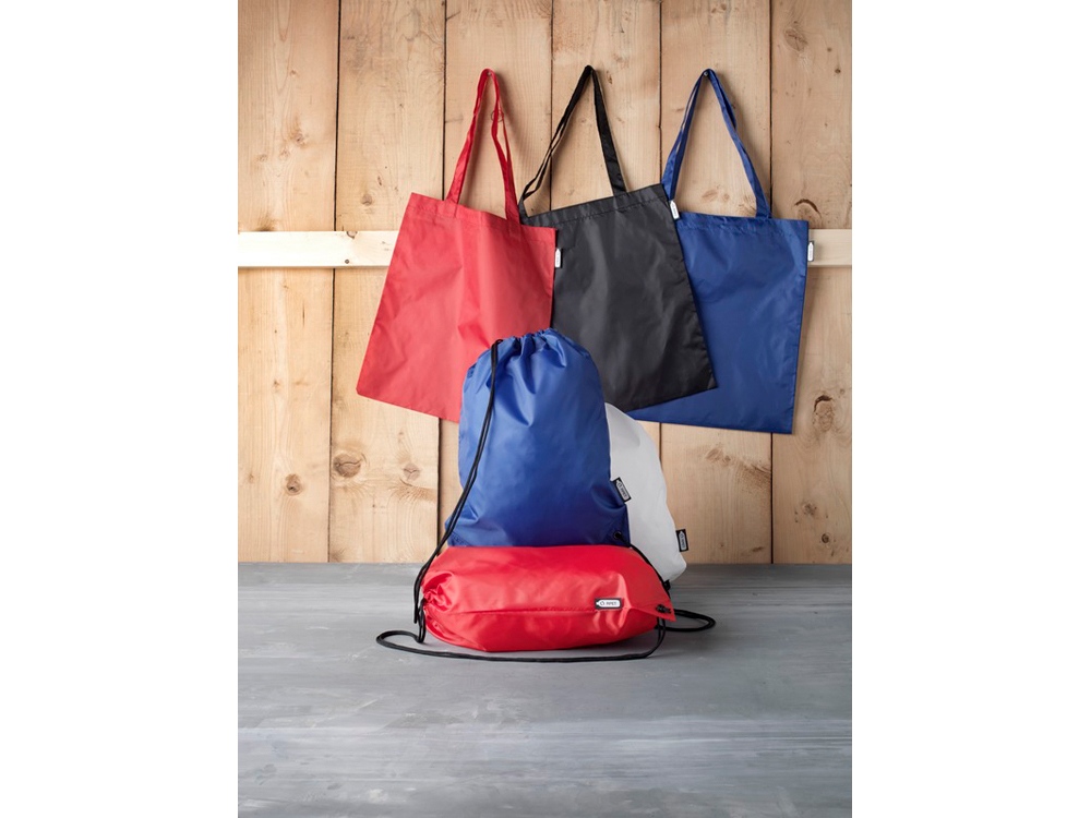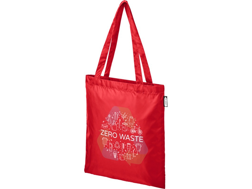Прочная сумка, изготовленная на 100% из переработанного пластика, предназначенного для повторного использования, что способствует уменьшению количества пластиковых отходов. Имеет две ручки, высота в раскрытом состоянии — 27 см. Выдерживает вес до 10 кг.