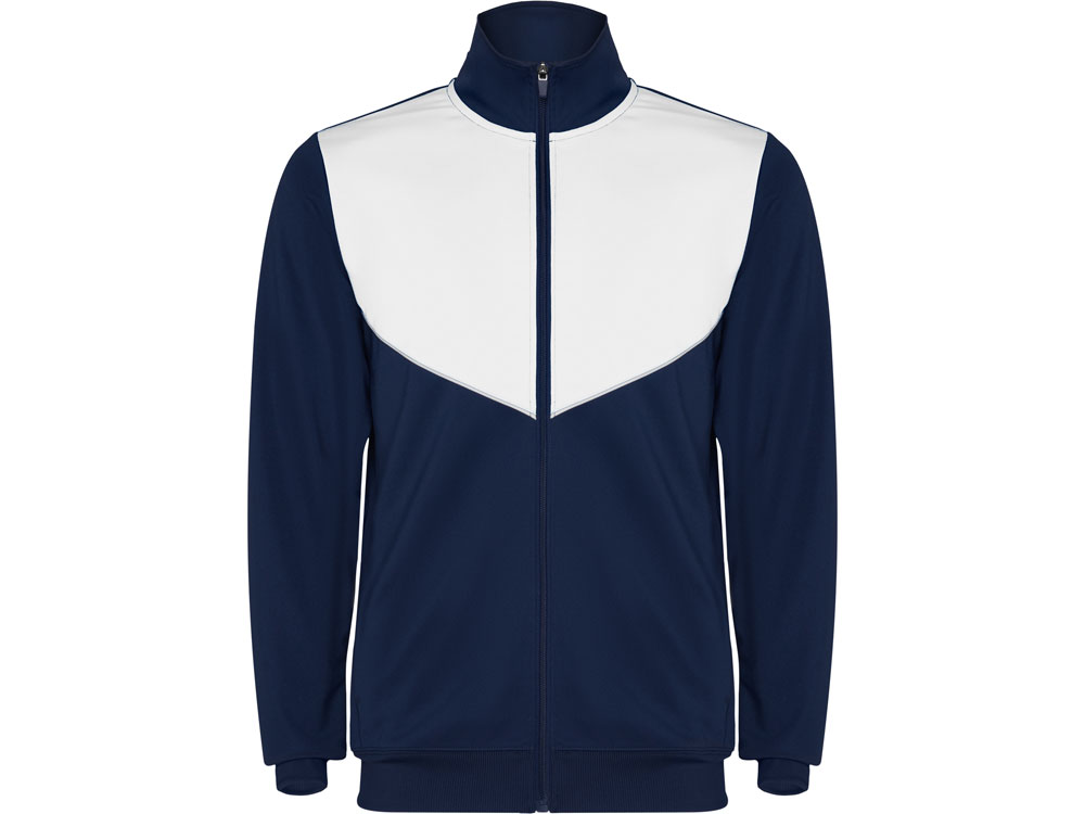 Спортивный костюм из облегченного и эластичного материала. - куртка с контрастными вставками и кантами - высокий воротник с контрастами строчками - центральная молния - боковые карманы - риб 2х2 на манжетах и низу - контрастные боковые части с кантами - молнии по низу - брюки на эластичном поясе со шнурками