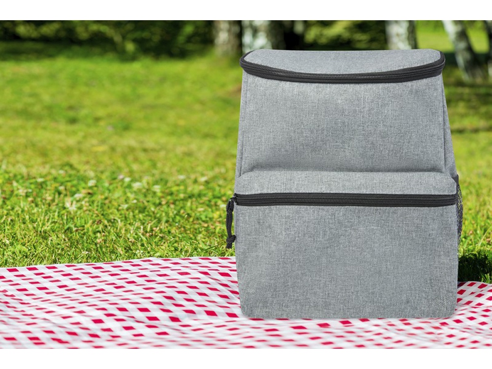 Рюкзак-холодильник Excursion с большим основным отделением на подкладке из PEVA-материала и молнией идеально подходит для того, чтобы взять его с собой в поход или на пикник. Термоотделение изготовлено из переработанного РЕТ-пластика, поэтому является экологичным выбором. Имеет боковой сетчатый карман для бутылки с водой, а в передний карман на молнии можно положить небольшие предметы. Мягкие плечевые ремни можно отрегулировать для идеальной и удобной посадки.