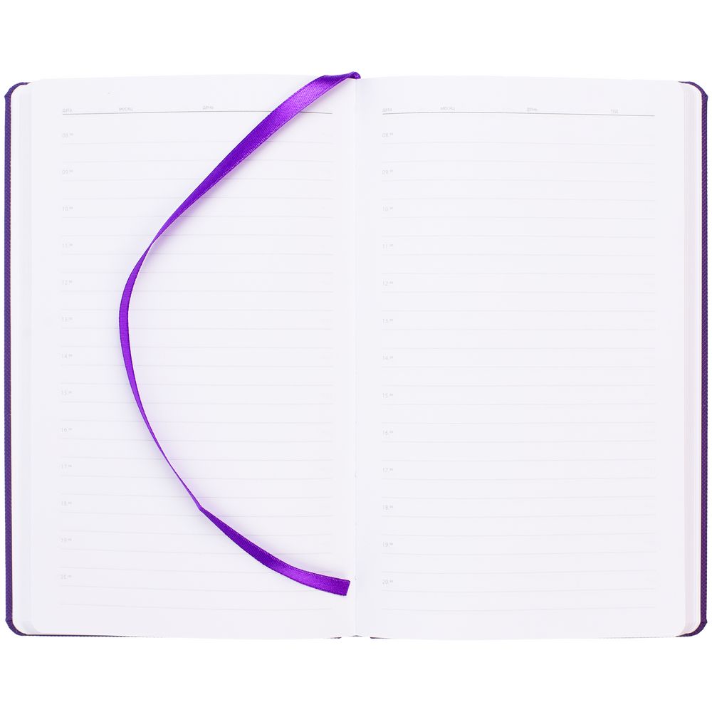 Ежедневник с твердой обложкой, выполнен из материала Canyon, фиолетовый UU, дополнен ляссе в цвет обложки.