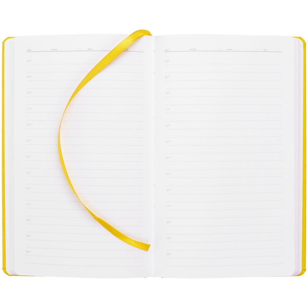 Ежедневник с твердой обложкой, выполнен из материала Canyon,желтый КК, дополнен ляссе в цвет обложки.