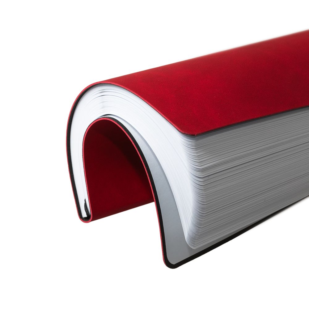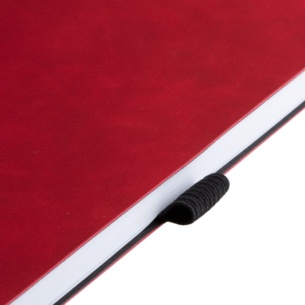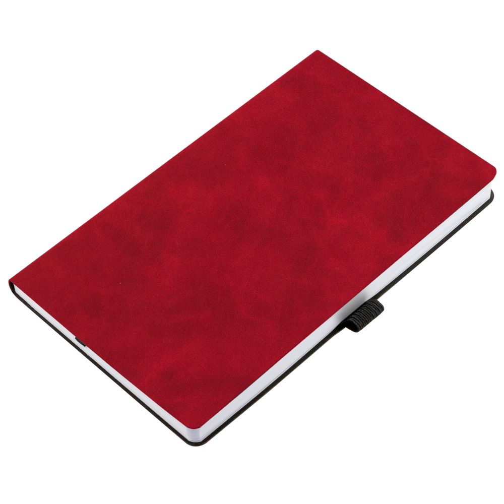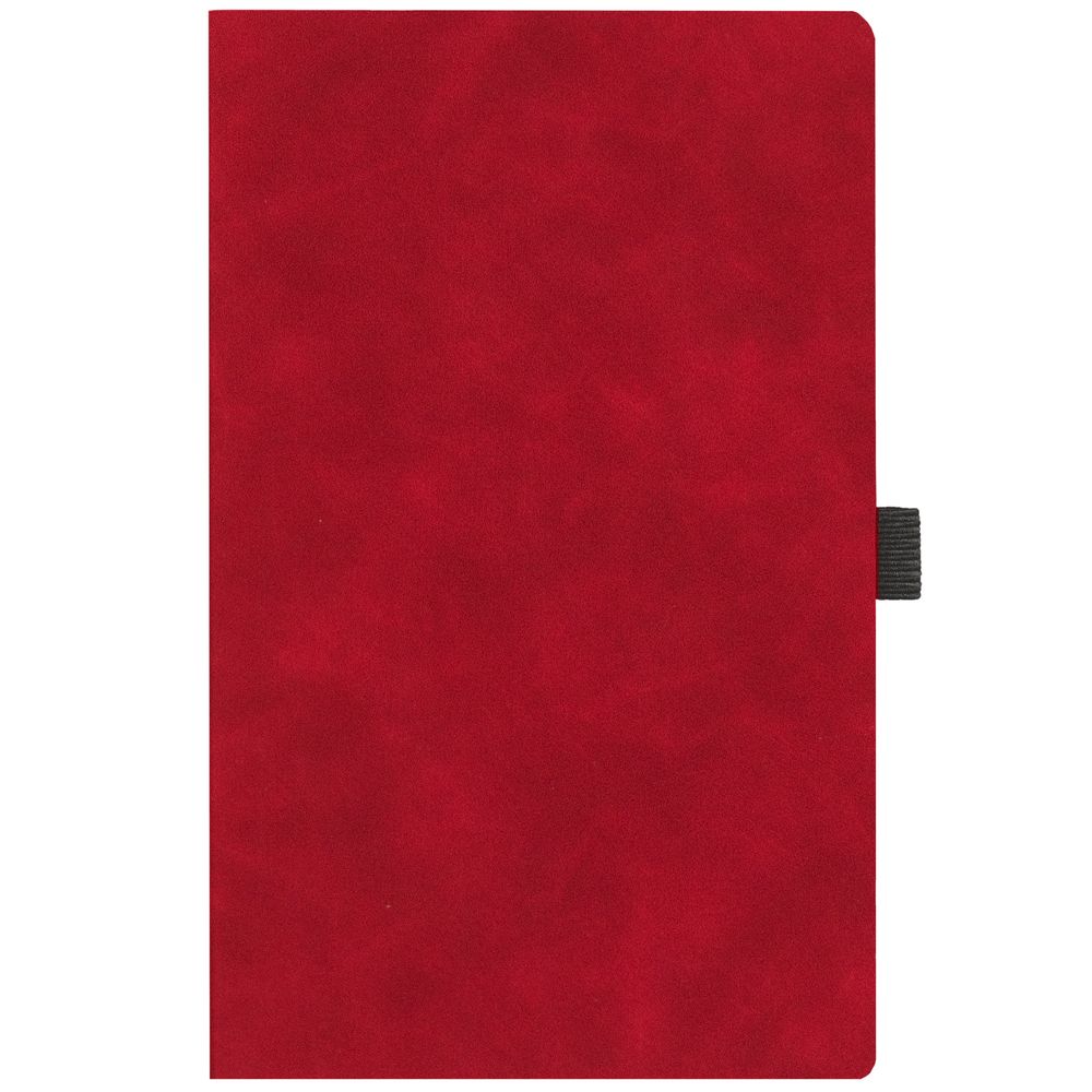 Ежедневник с гибкой обложкой, выполнен из материала Nubuck Touch, красный РР, дополнен ляссе и петлей-резинкой для ручки черного цвета.