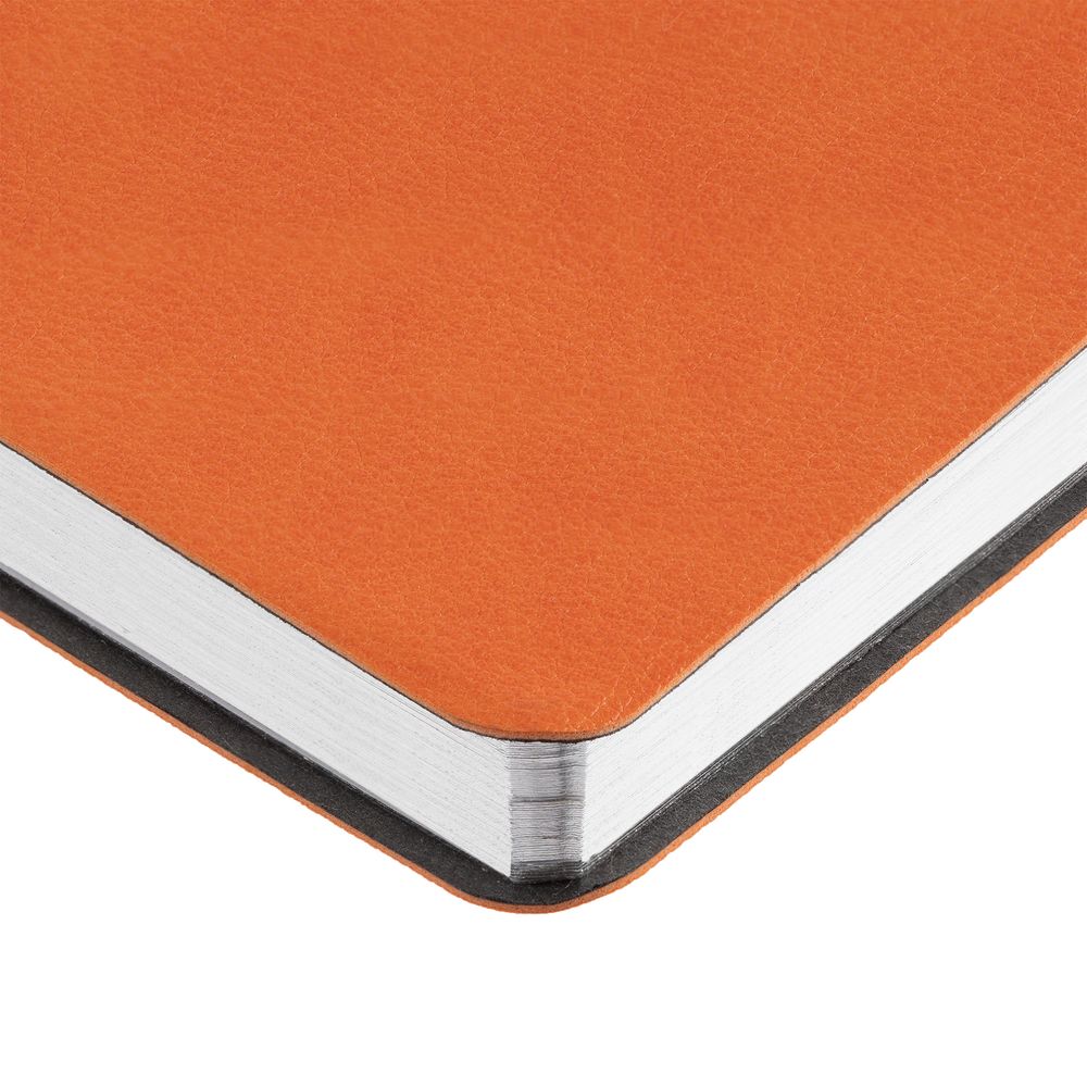 Ежедневник с гибкой обложкой, выполнен из материала Petrus, оранжевый ОО, дополнен серым ляссе с металлическим шильдиком.