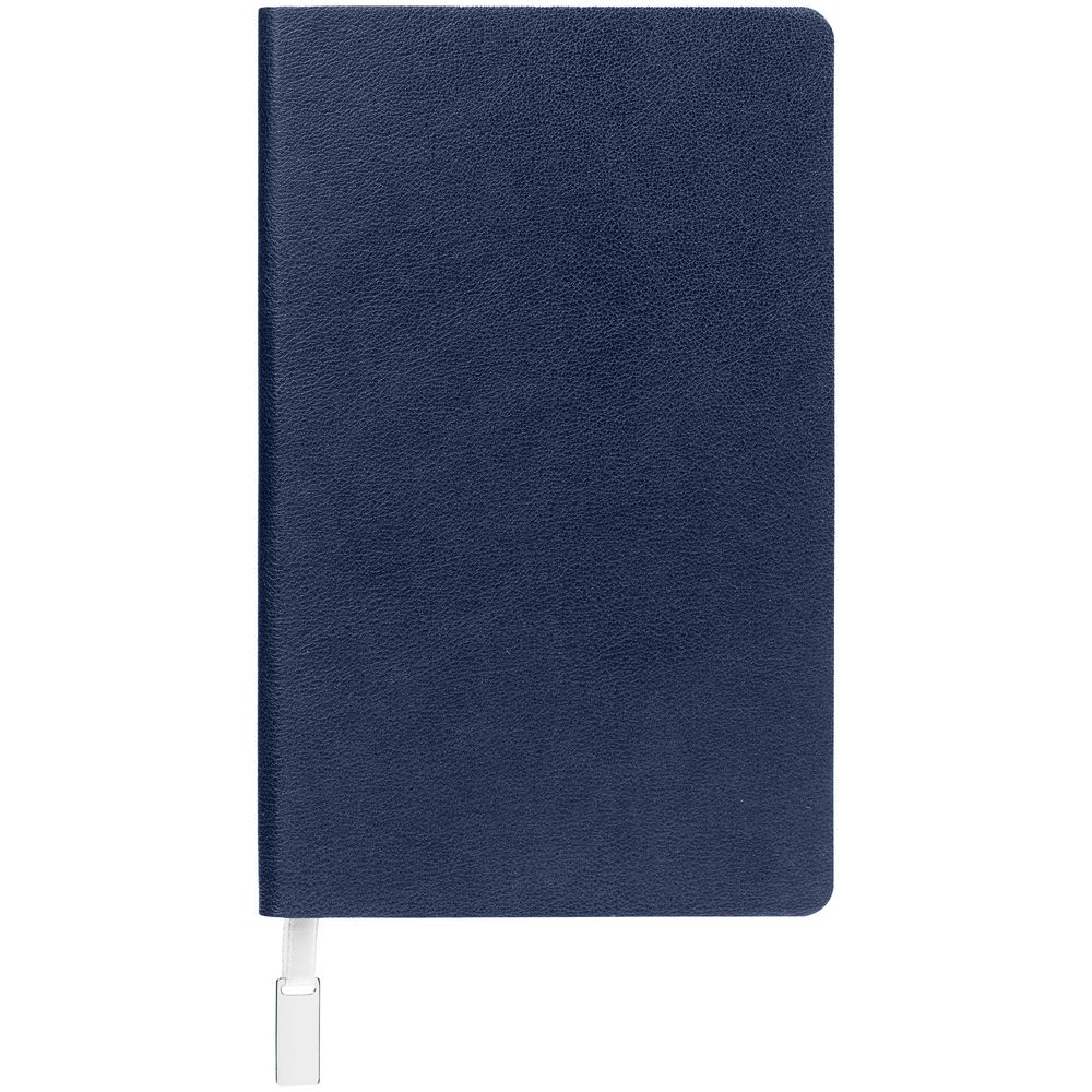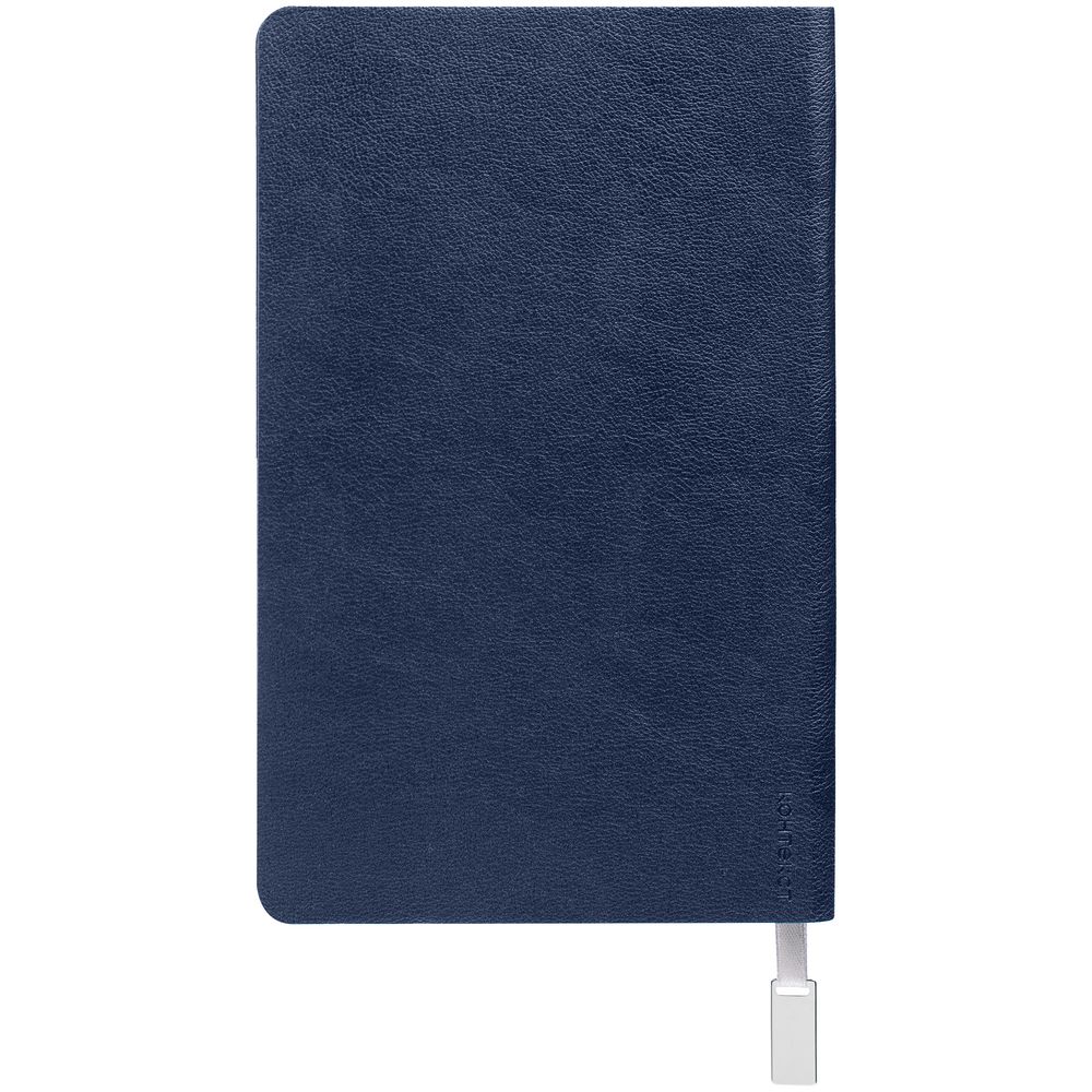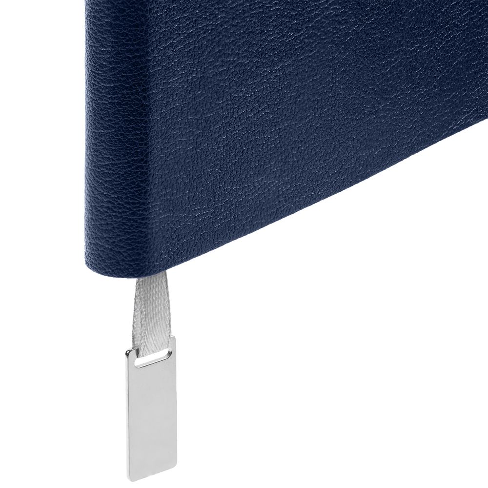 Ежедневник с гибкой обложкой, выполнен из материала Petrus, синий НН, дополнен серым ляссе с металлическим шильдиком.