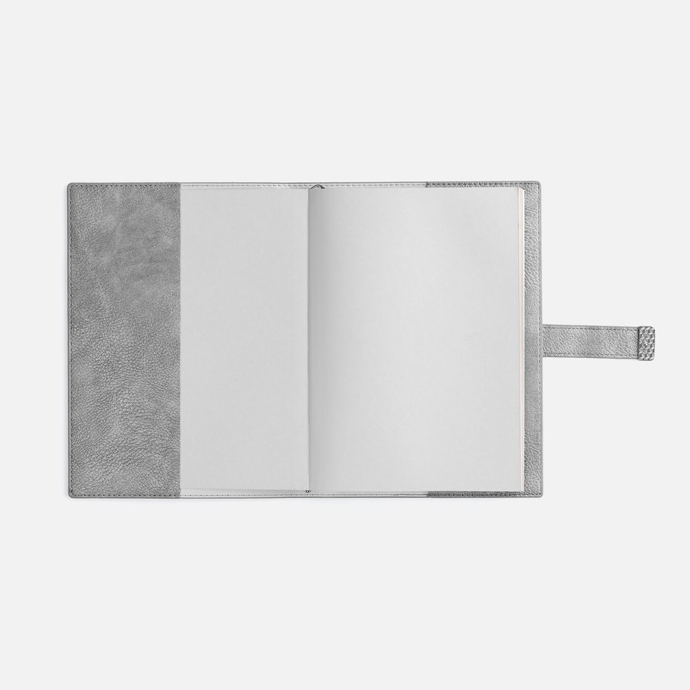 Ежедневник в мягком переплете со съёмная обложкой, дополнен застёжкой-хлястиком  с металлическим шильдом на кнопке, двойным ляссе и капталом.