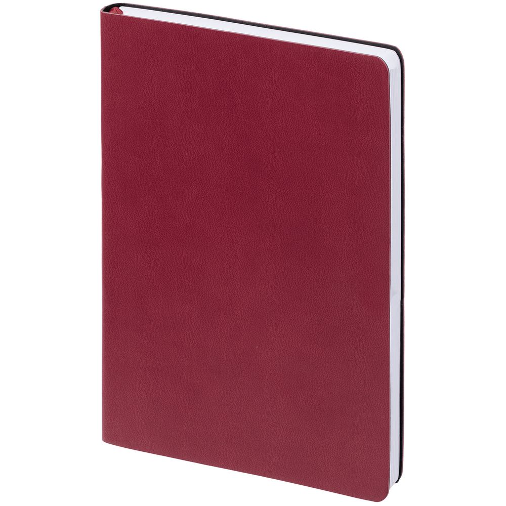 Ежедневник с гибкой обложкой, выполнен из материала Latte, бордовый, дополнен ляссе в цвет обложки.