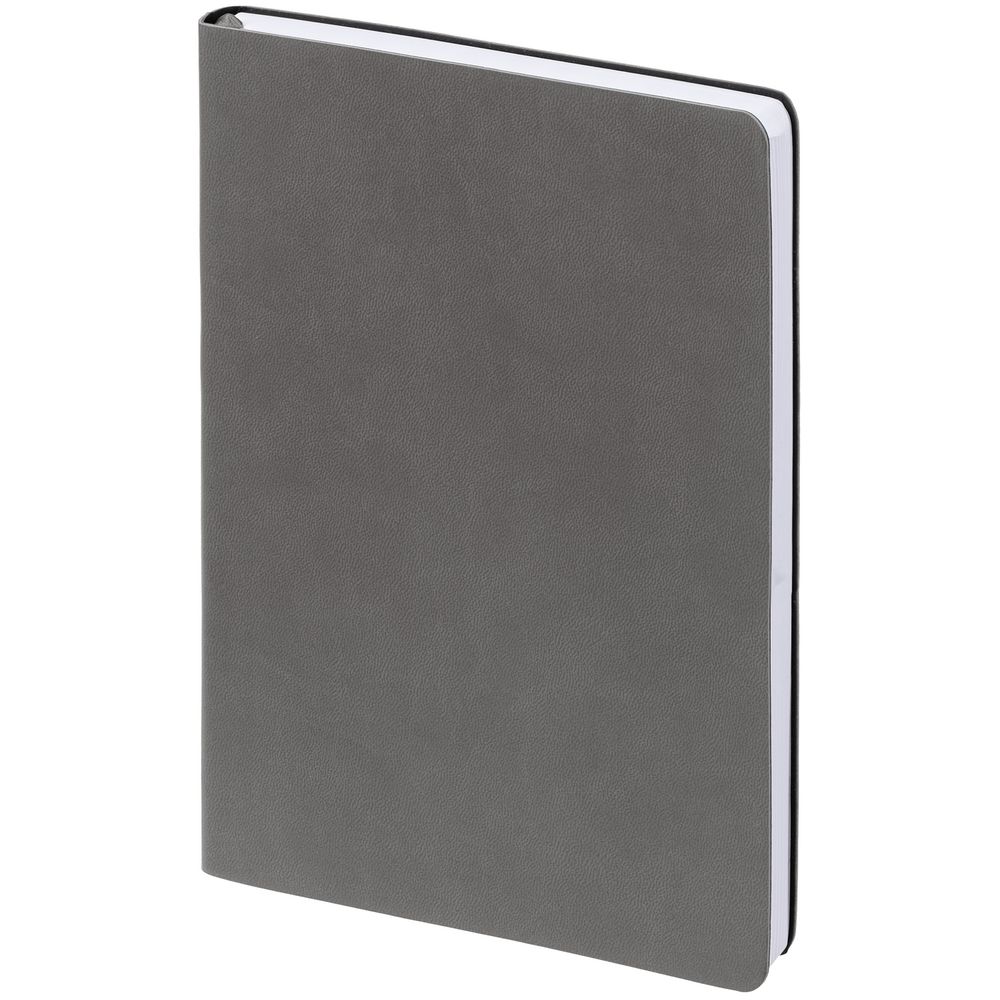 Ежедневник с гибкой обложкой, выполнен из материала Latte, темно-серый, дополнен ляссе в цвет обложки.