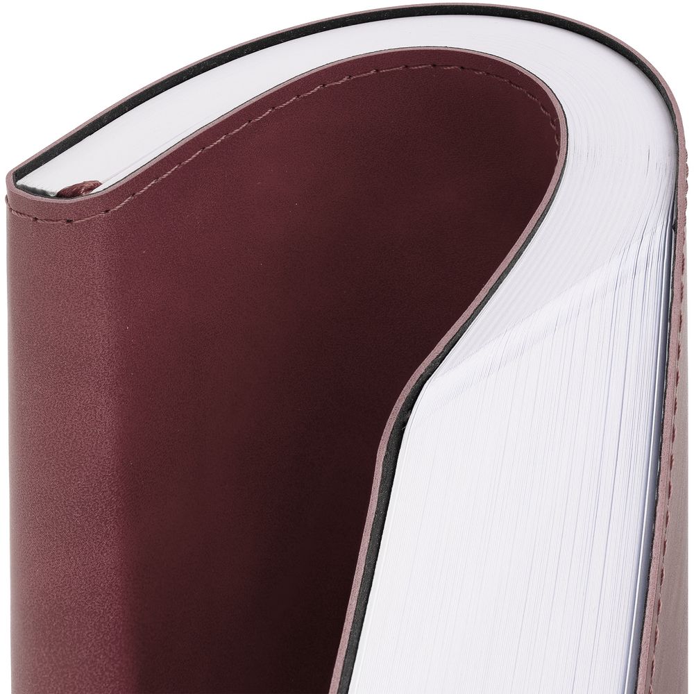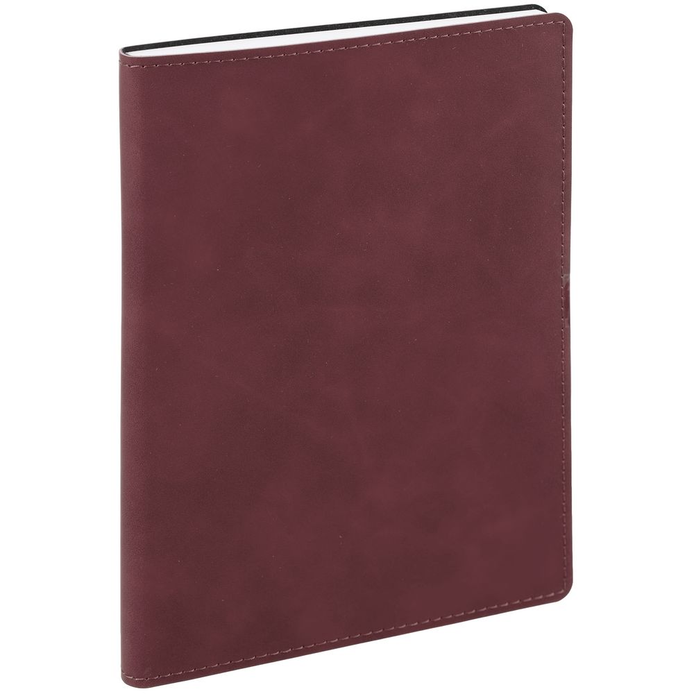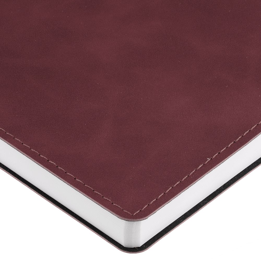 Ежедневник с гибкой обложкой, выполнен из материала Nubuck Touch, бордовый QQ, дополнен ляссе в цвет обложки.