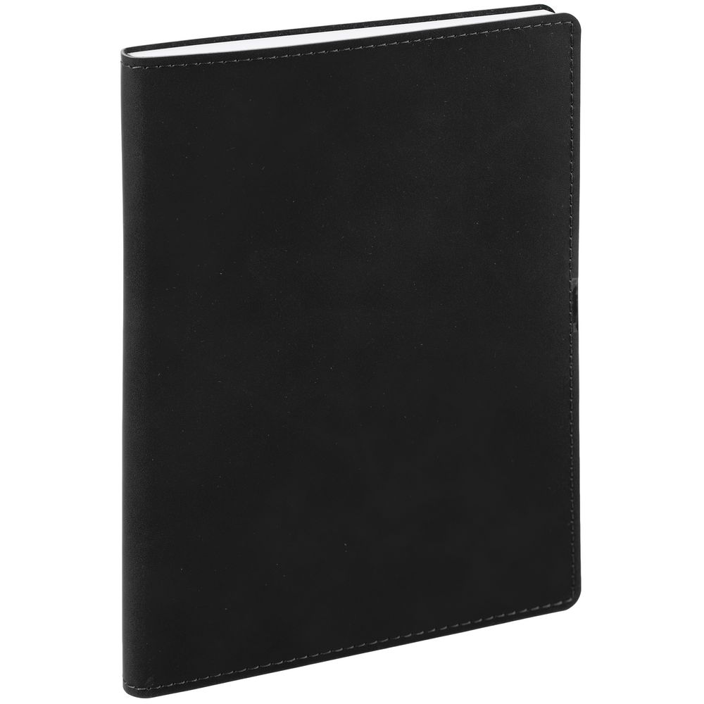Ежедневник с гибкой обложкой, выполнен из материала Nubuck Touch, черный AA, дополнен ляссе в цвет обложки.