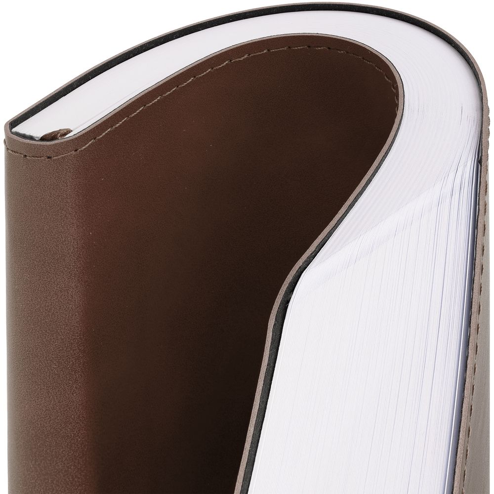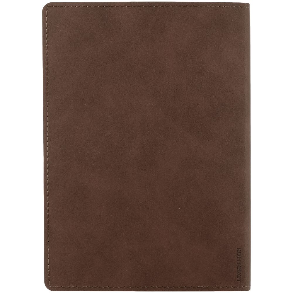 Ежедневник с гибкой обложкой, выполнен из материала Nubuck Touch, коричневый RR, дополнен ляссе темно-коричневого цвета.