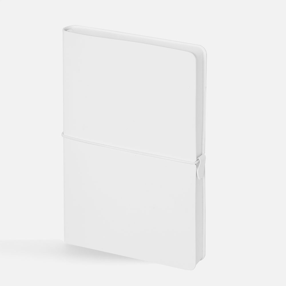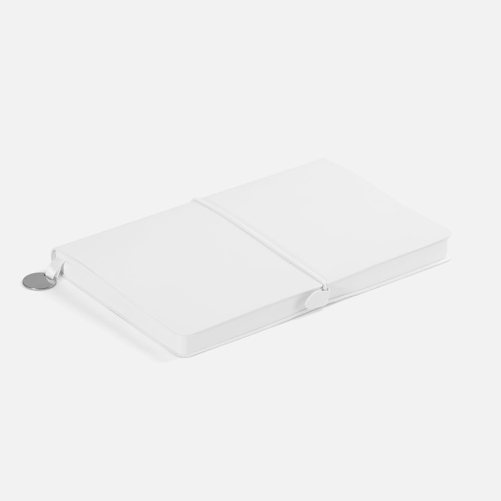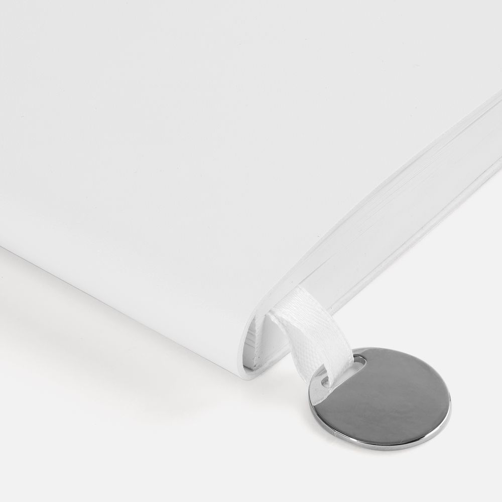 Ежедневник с гибкой обложкой, выполнен из материала Waltz, белый BB, дополнен ляссе в цвет обложки с металлическим шильдом.