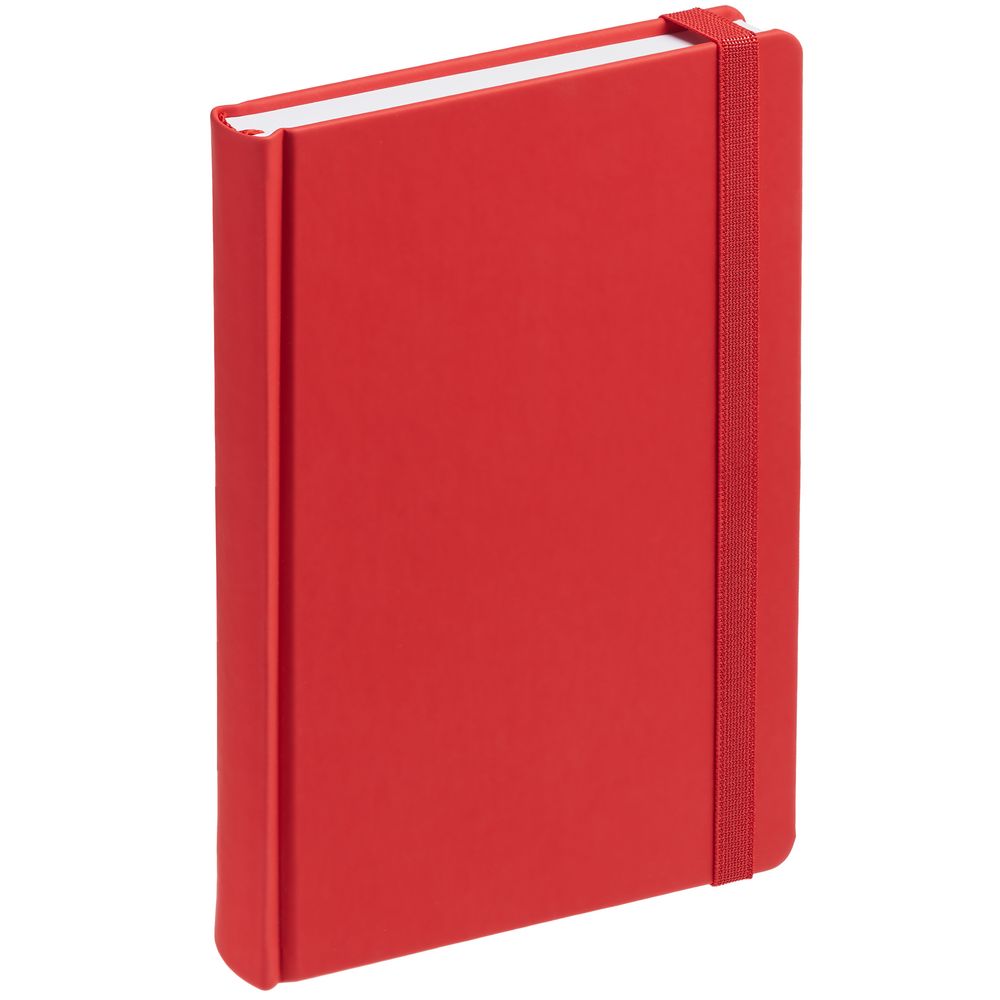 Ежедневник с твердой обложкой без поролона, выполнен из материала Soft Touch Ultra, красный РР, дополнен резинкой шириной 1 см, петлей-резинкой для ручки, капталом и ляссе красного цвета.