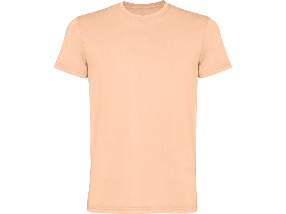 Мужская футболка с коротким рукавом из 100% хлопка с аксидной стиркой. Круглый вырез горловины из риба 1х1. Отстрочка в тон по горловине.