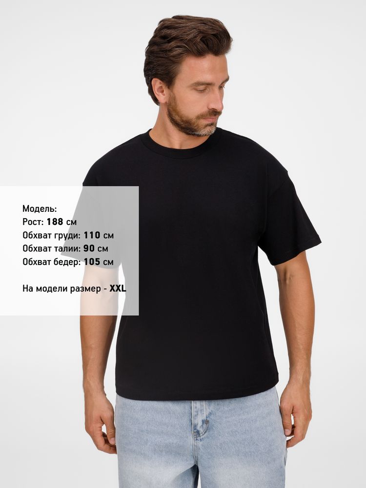 Футболка оверсайз унисекс с круглым вырезом и без боковых швов. Выполнена из смеси переработанного и обычного хлопка. Благодаря повышенной плотности отлично держит форму.