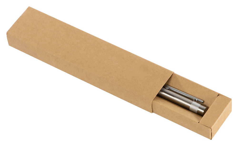 Футляр рассчитан на одну ручку. Изготовлен из переработанного картона. Натуральный крафтовый цвет – прекрасный выбор для подарочной упаковки с персонализацией. Логотип самого футляра и знак переработки нанесены на боковой стороне прозрачным лаком, что делает их практически незаметными по сравнению с вашим логотипом. · Натуральный крафтовый цвет · Забота об экологии