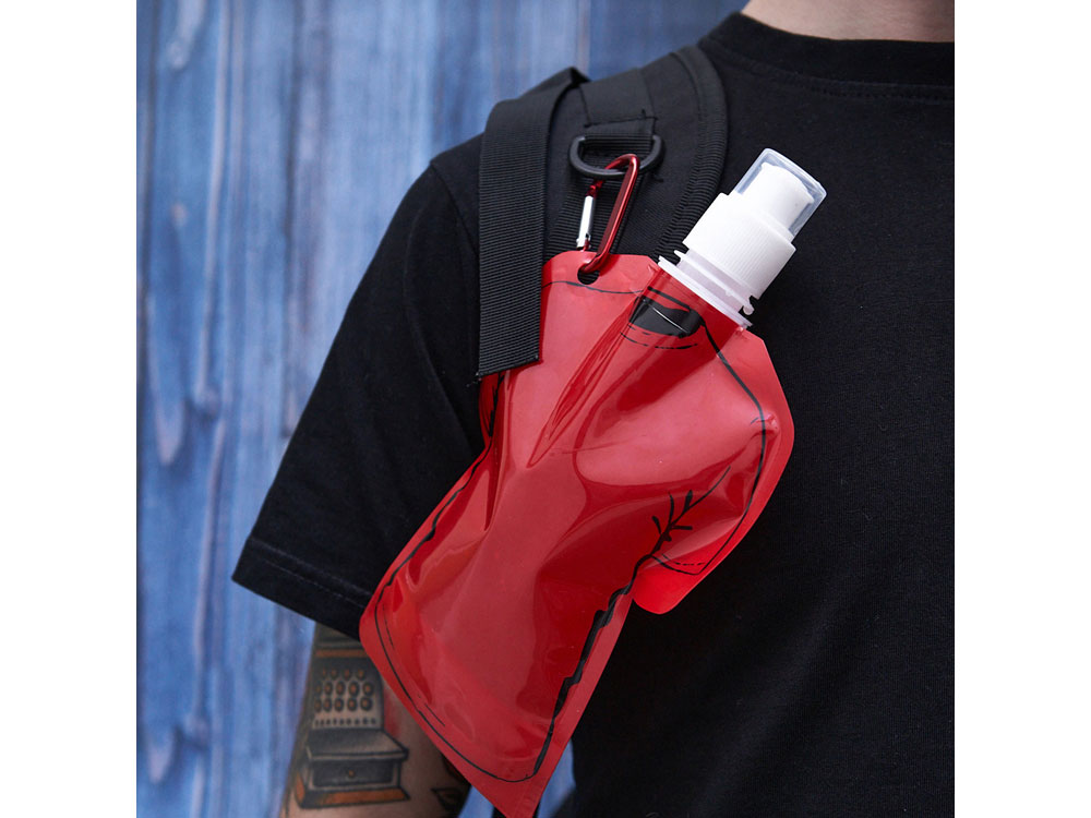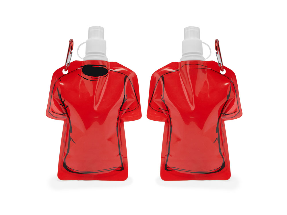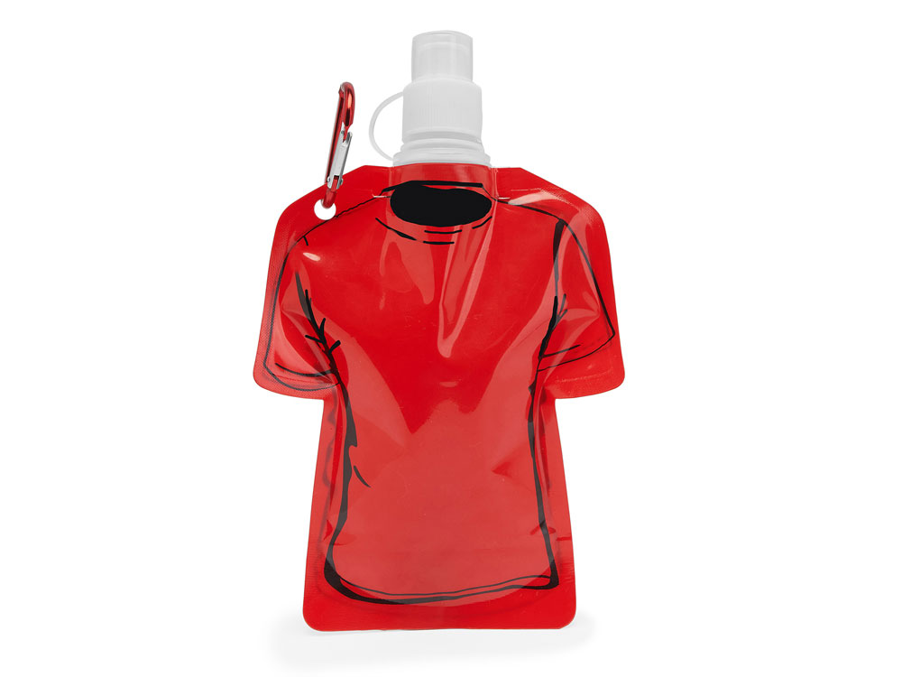 Гибкая емкость для питья в форме футболки, с защитным колпачком и карабином для удобства транспортировки. Объем 470 мл.