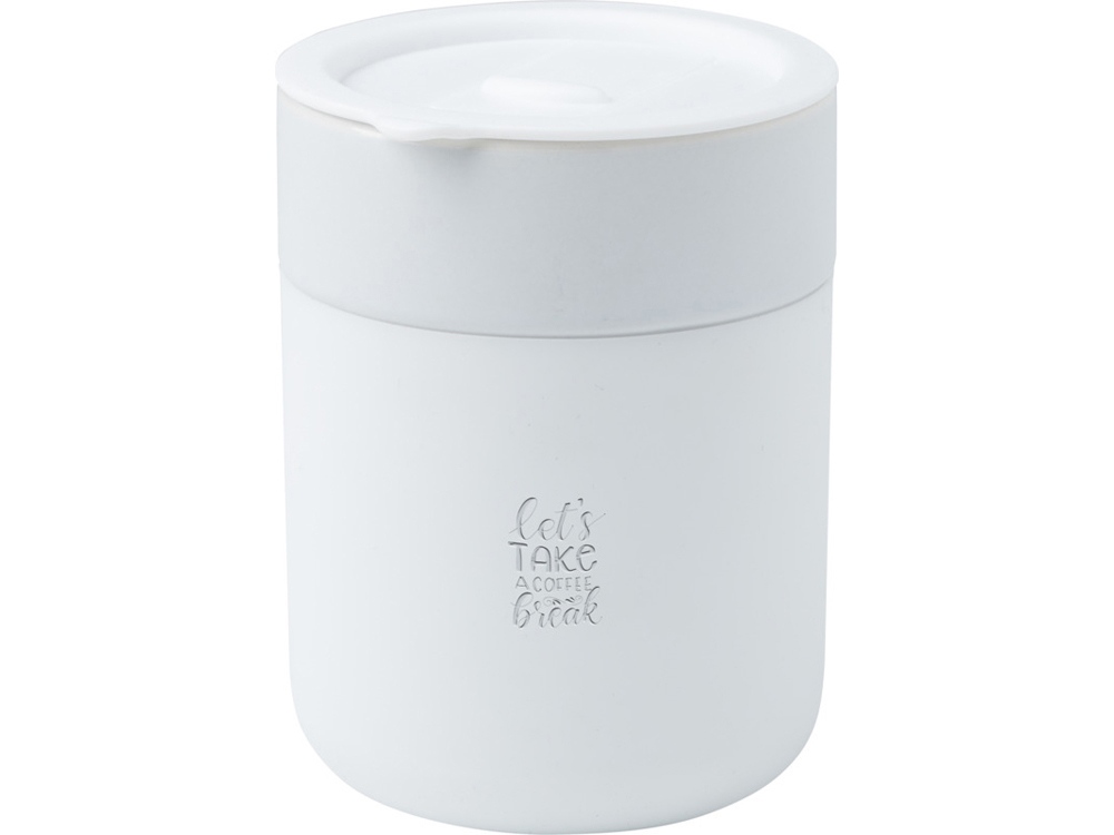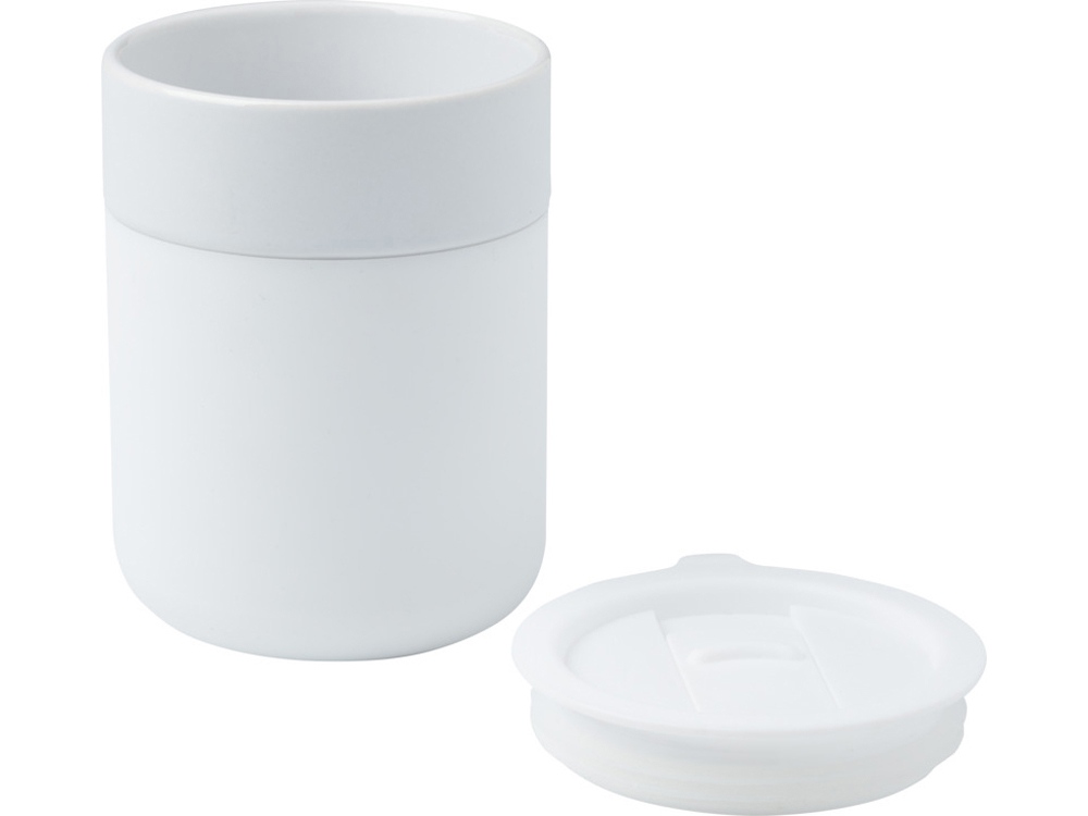 Java керамическая кружка емкостью 330 мл с силиконовой оберткой и пластиковой крышкой - Белый
