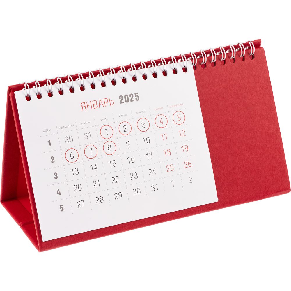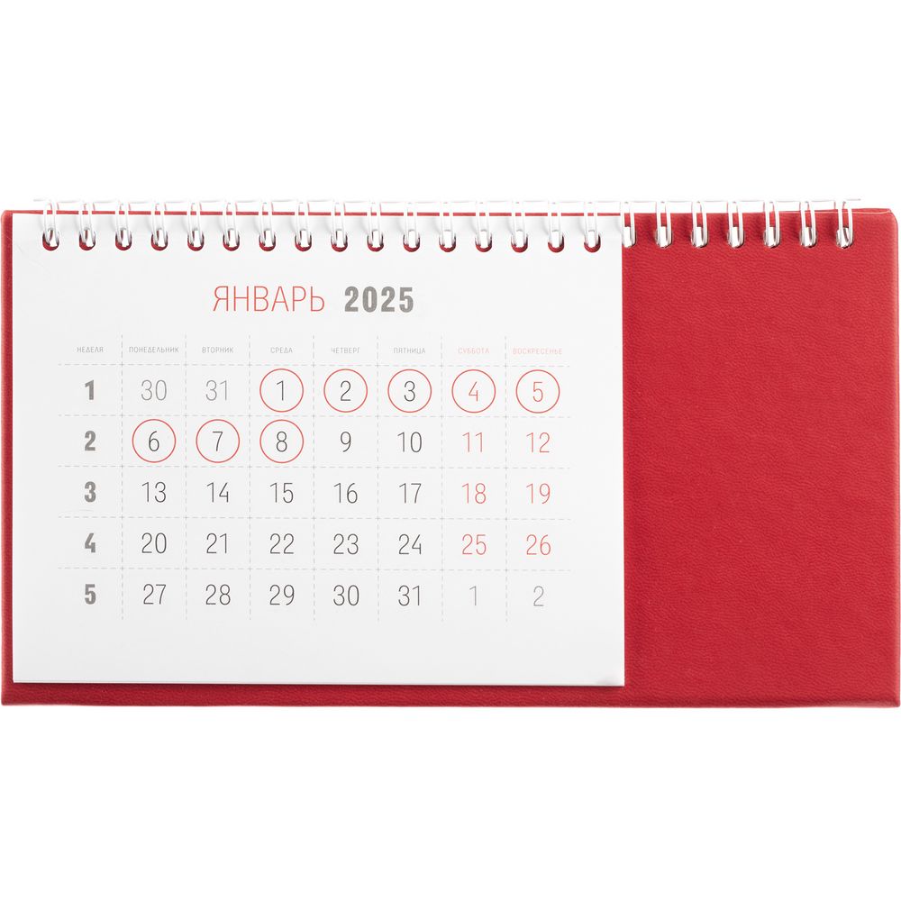 Настольный, перекидной календарь-«домик» выполнен из материала Latte, красный РР.