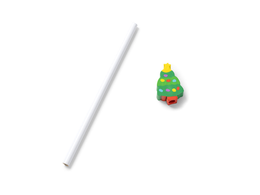 Карандаш NUSS с ластиком в виде ёлки, белый/зеленый купить оптом и в розницу с нанесением логотипа в Санкт-Петербурге