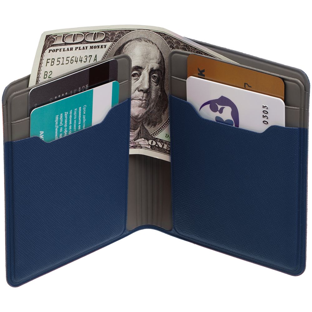 Картхолдер с отделением для купюр Dual, синий купить оптом и в розницу с нанесением логотипа в Санкт-Петербурге