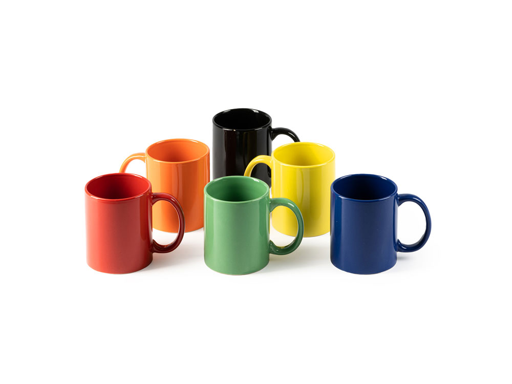 Цветная керамическая чашка 370 мл. Поставляется в белой коробке. Продукт подходит для использования в микроволновой печи и посудомоечной машине.