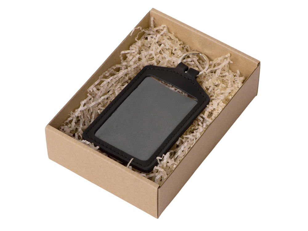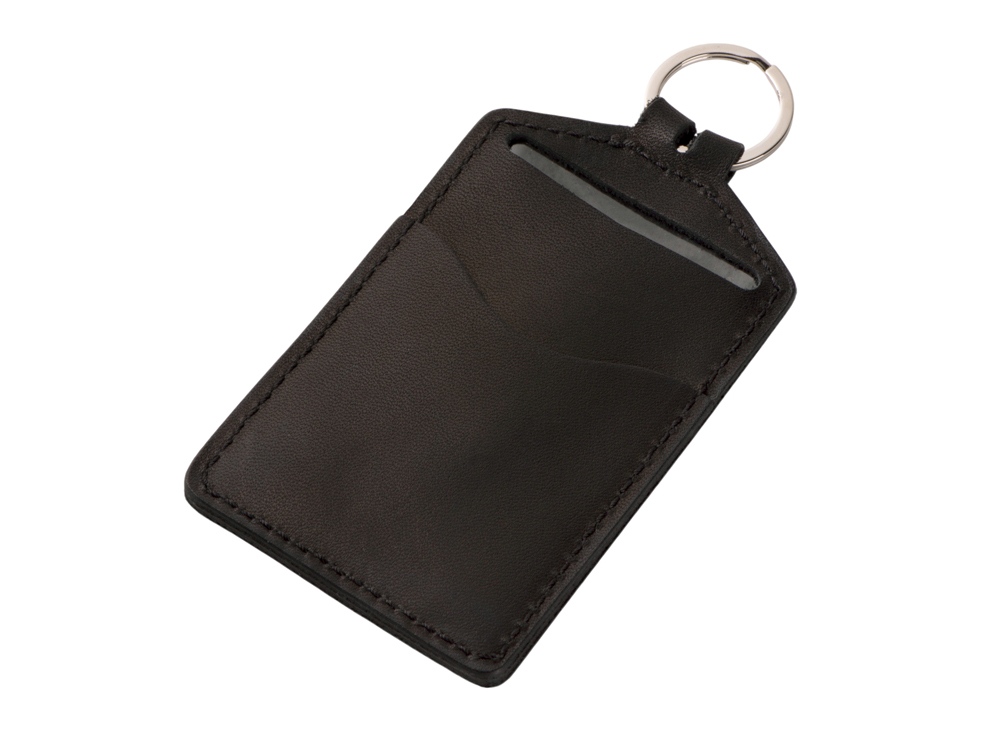 Кожаный бейдж для пропуска, черный купить оптом и в розницу с нанесением логотипа в Санкт-Петербурге