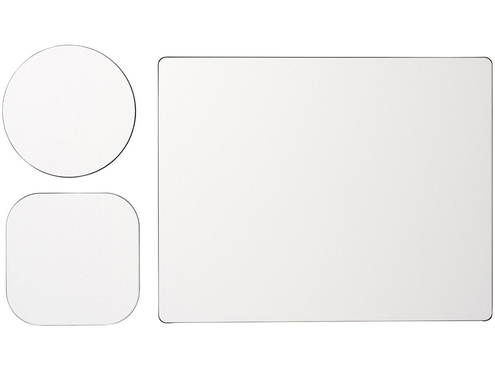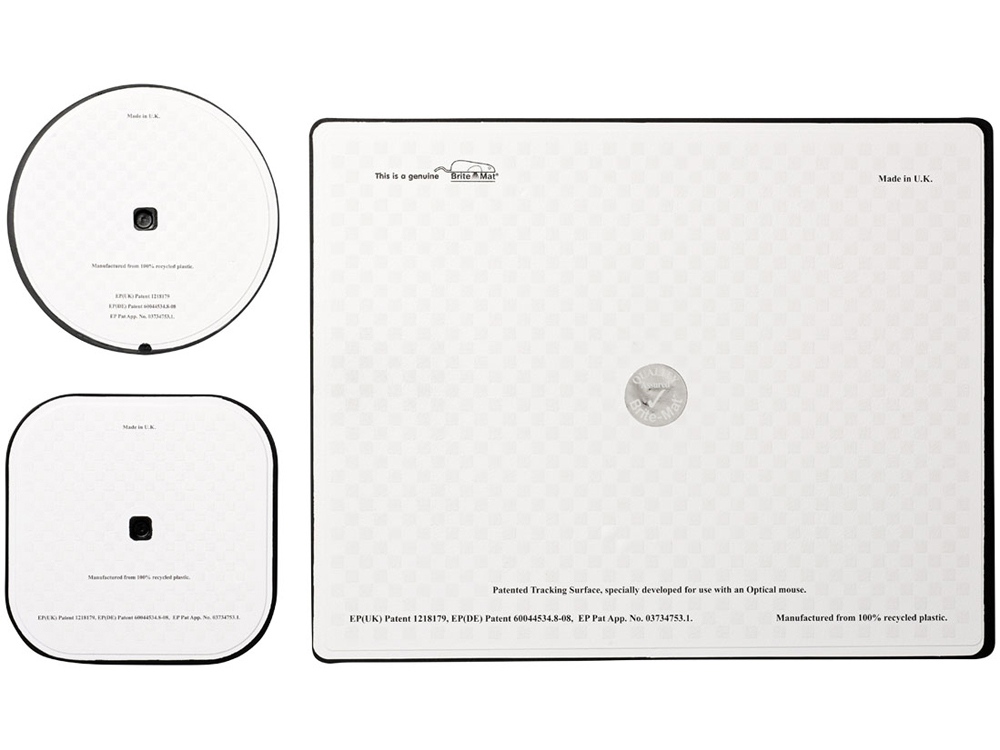 Комплект Brite-Mat® из коврика для мыши и подставки 1. Поставляется с ковриком для мыши Brite-Mat и набором соответствующих подставок. Набор состоит из прямоугольного коврика для мыши (0,3 x 19 x 21 см), квадратной подставки (0,3 х 9,5 х 9,5 см) и круглой подставки (0,3 x ø9,5 см). Ламинированная бумага и переработанная пластмасса.