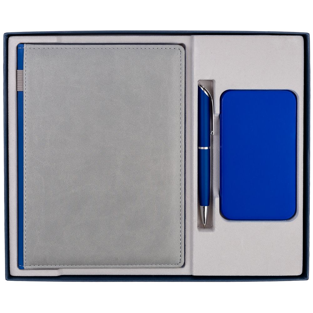 Коробка Overlap под ежедневник, аккумулятор и ручку, ver. 2, синяя