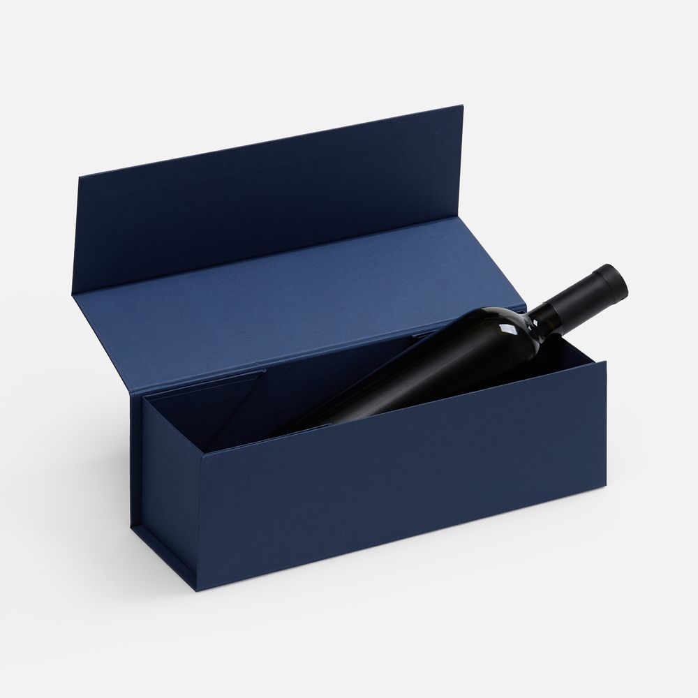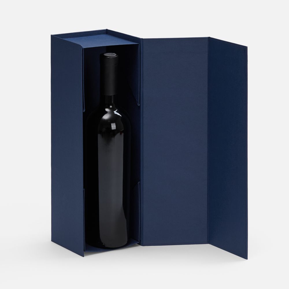 Коробка складная под бутылку Color Jacket Fold, темно-синяя купить оптом и в розницу с нанесением логотипа в Санкт-Петербурге