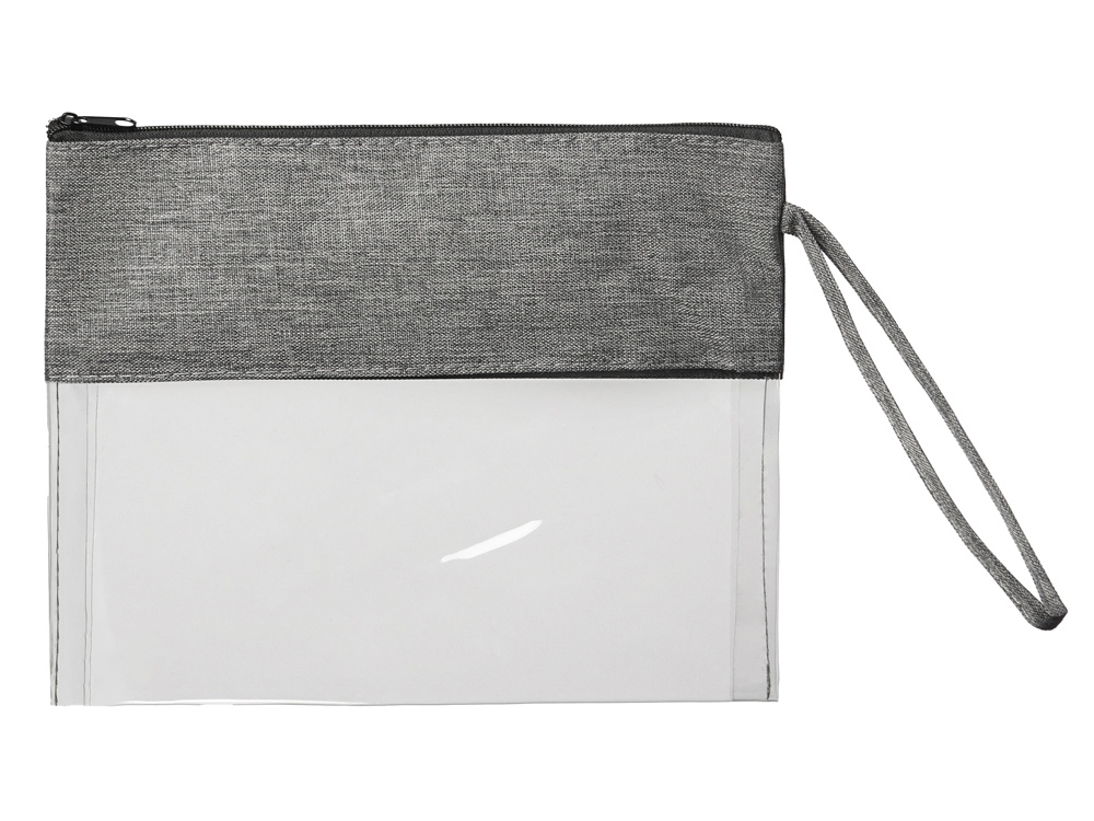 Косметичка из PVC и ткани Leony, прозрачный/темно-серый купить оптом и в розницу с нанесением логотипа в Санкт-Петербурге