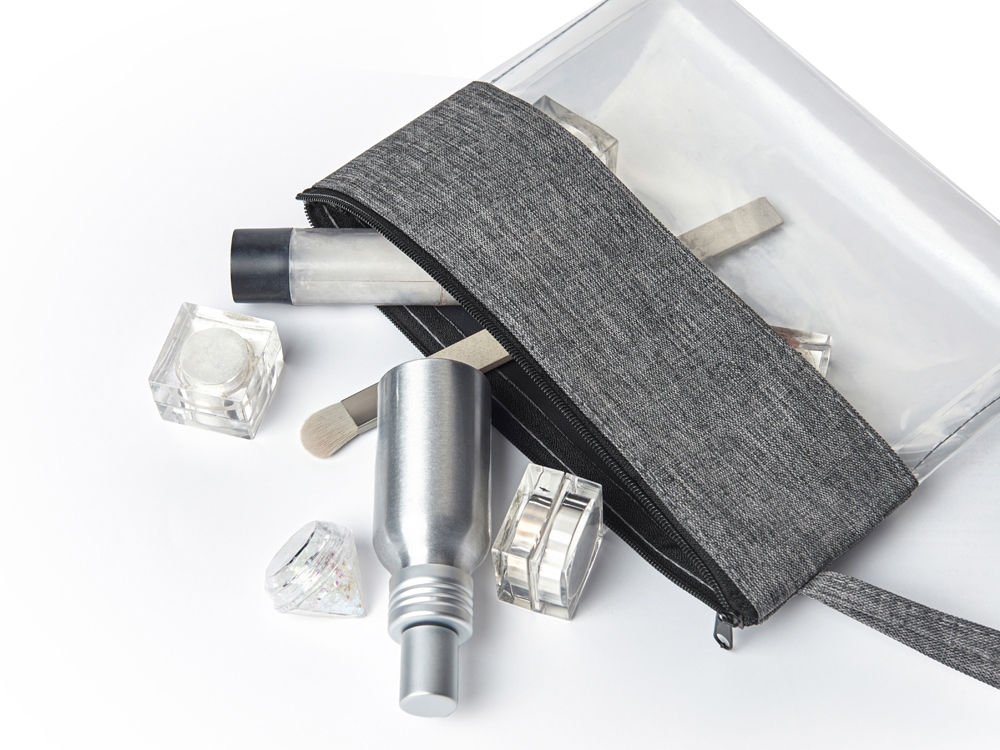 Косметичка из PVC и ткани Leony, прозрачный/темно-серый