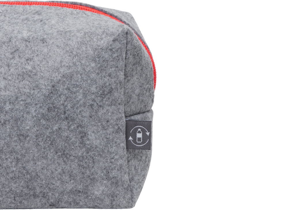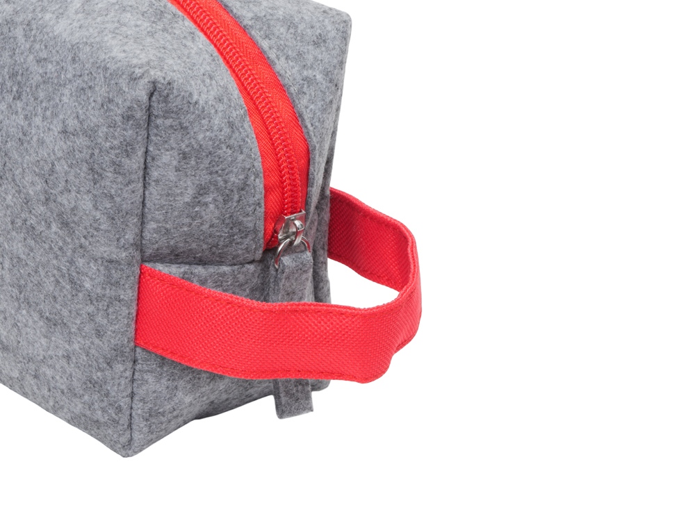 Косметичка из РПЕТ фетра с ручкой Felt, серый с красным купить оптом и в розницу с нанесением логотипа в Санкт-Петербурге