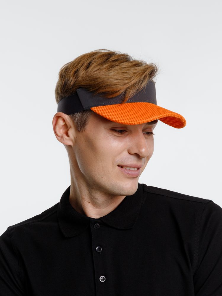 Козырек Grand Slam, темно-серый с оранжевым купить оптом и в розницу с нанесением логотипа в Санкт-Петербурге