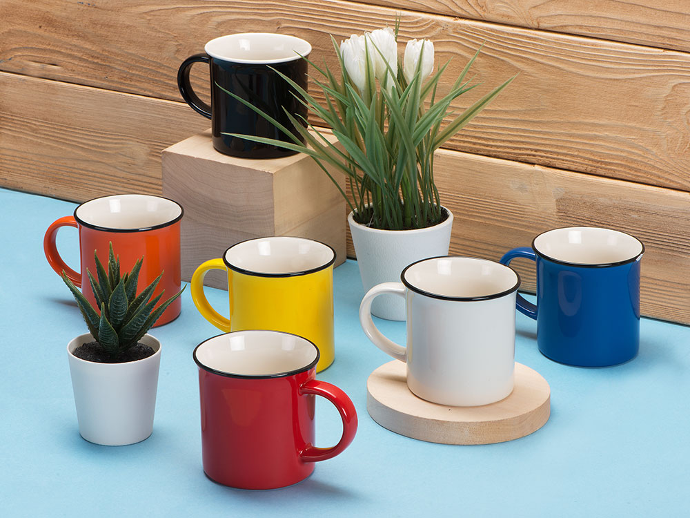 Кружка Countryside S с черным ободком, белая внутри, цветная снаружи, красный