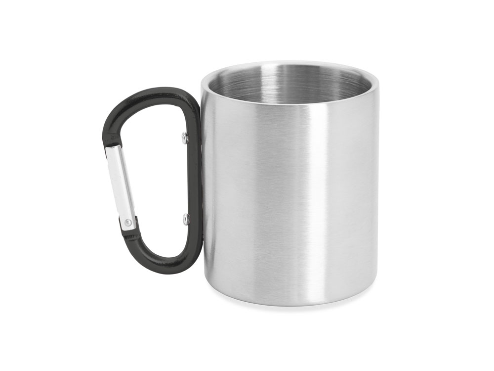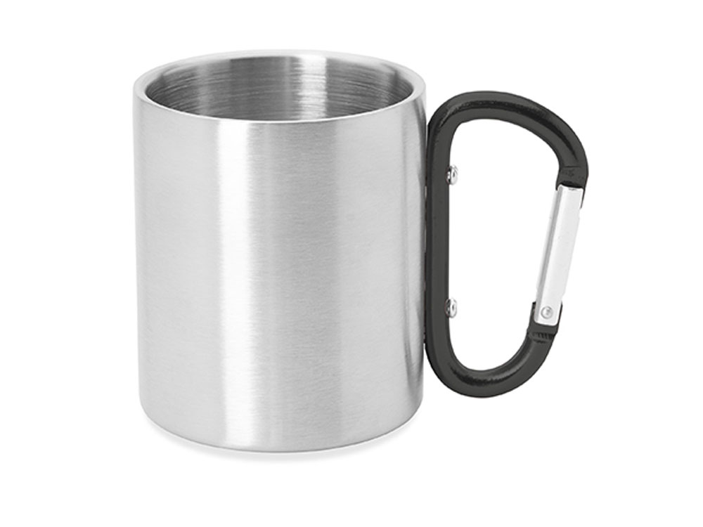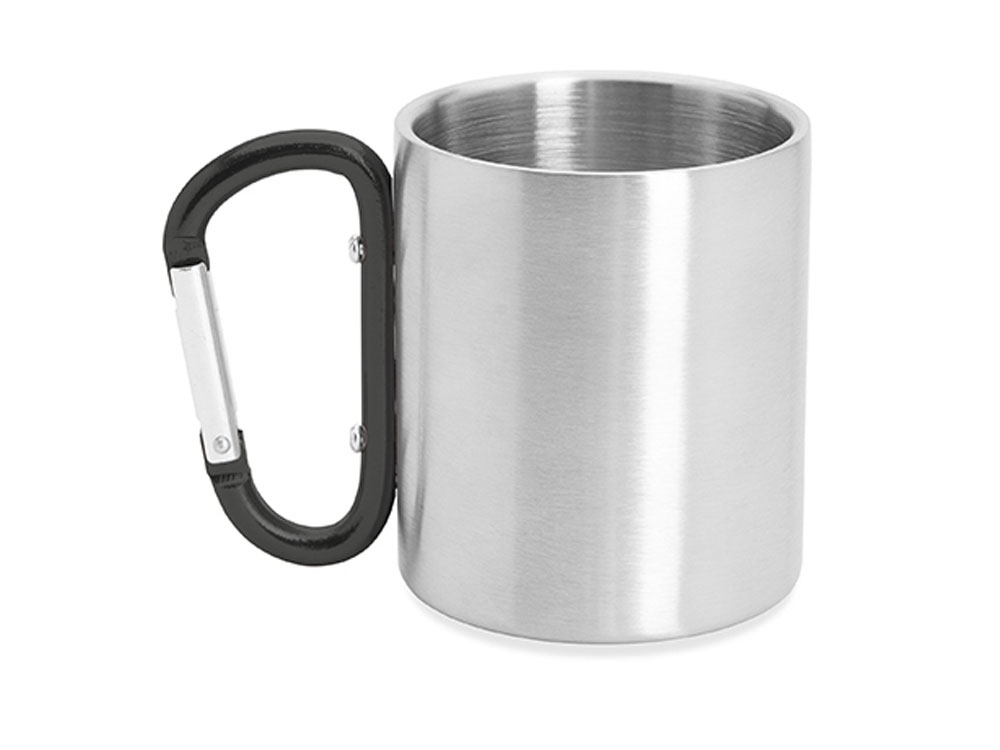 Двустенная металлическая кружка с ручкой-карабином. Доступен в различных цветах. Объем 230 мл.