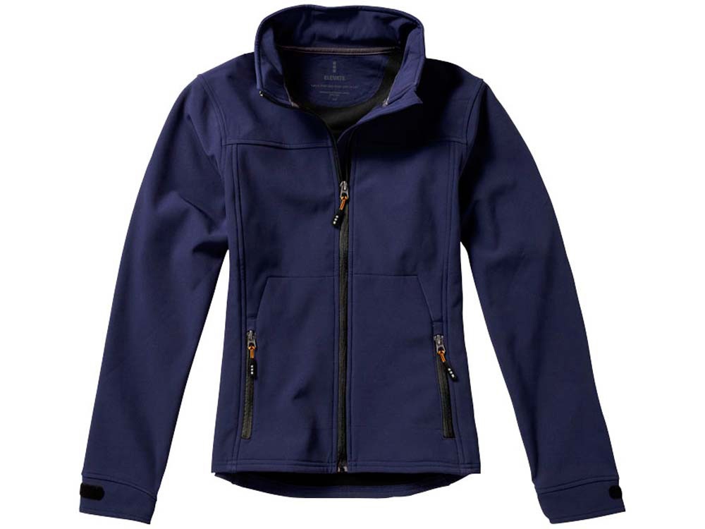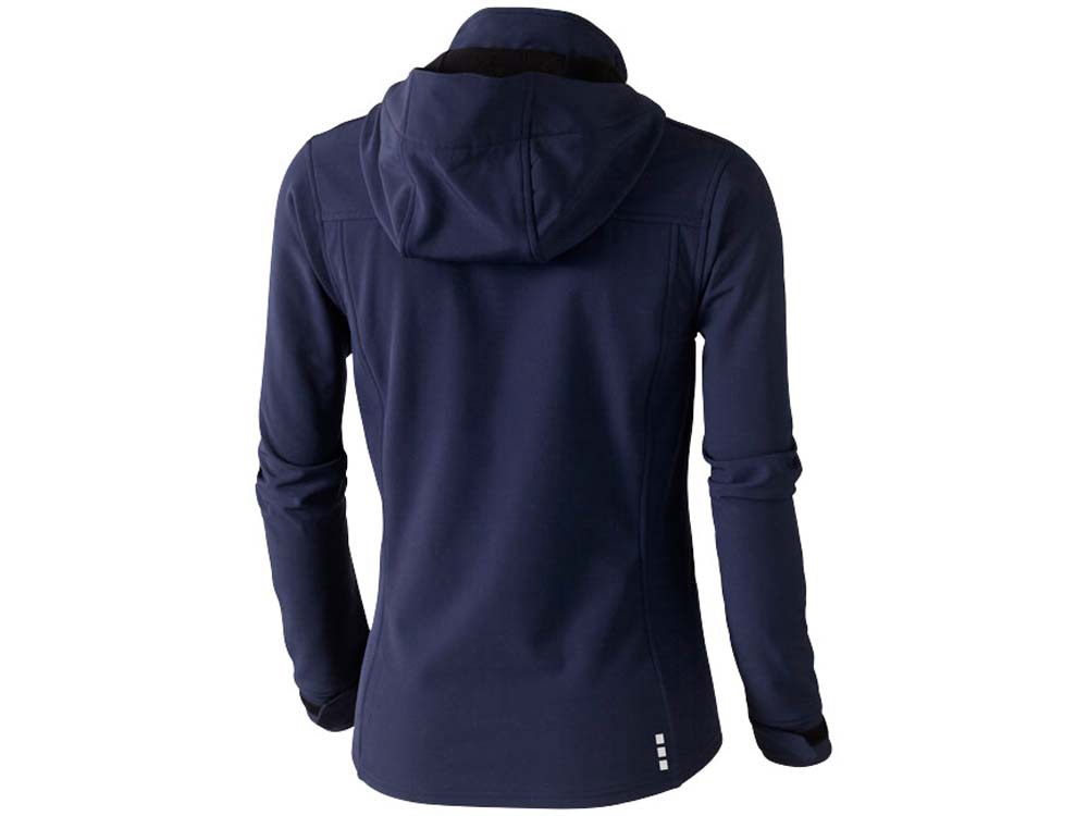 Женская куртка софтшел Langley. Стандартный покрой. Отстегивающийся капюшон на шнурках со стопперами. Обратная молния по центру и на карманах для рук. Регулируемые манжеты на липучках. Отражающий лого сзади. Водонепроницаемый 5000 мм. Дышащий 3000 мм. Ткань эластична в четырех направлениях. Ветронепроницаемая. Ремешки на собачку (второй комплект в цвете антрацит). Ткань из 90% полиэстера и 10% эластана, склеенного со 100% полиэстеровым микрофлисом. 300 г/м².